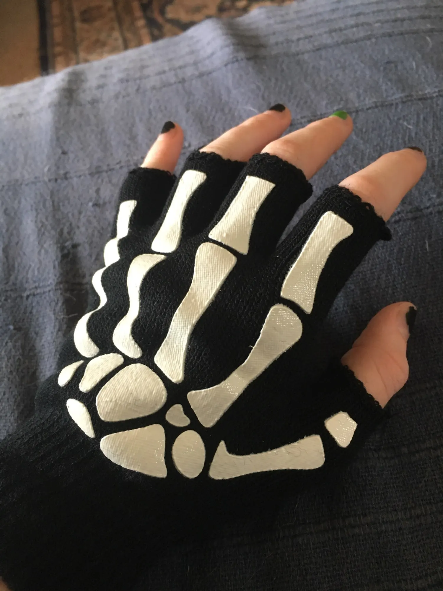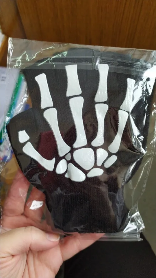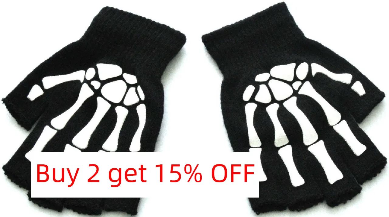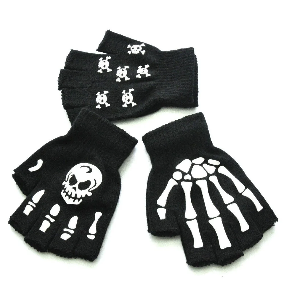 Перчатки вязаные без пальцев, для взрослых, с принтом скелета, Нескользящие
