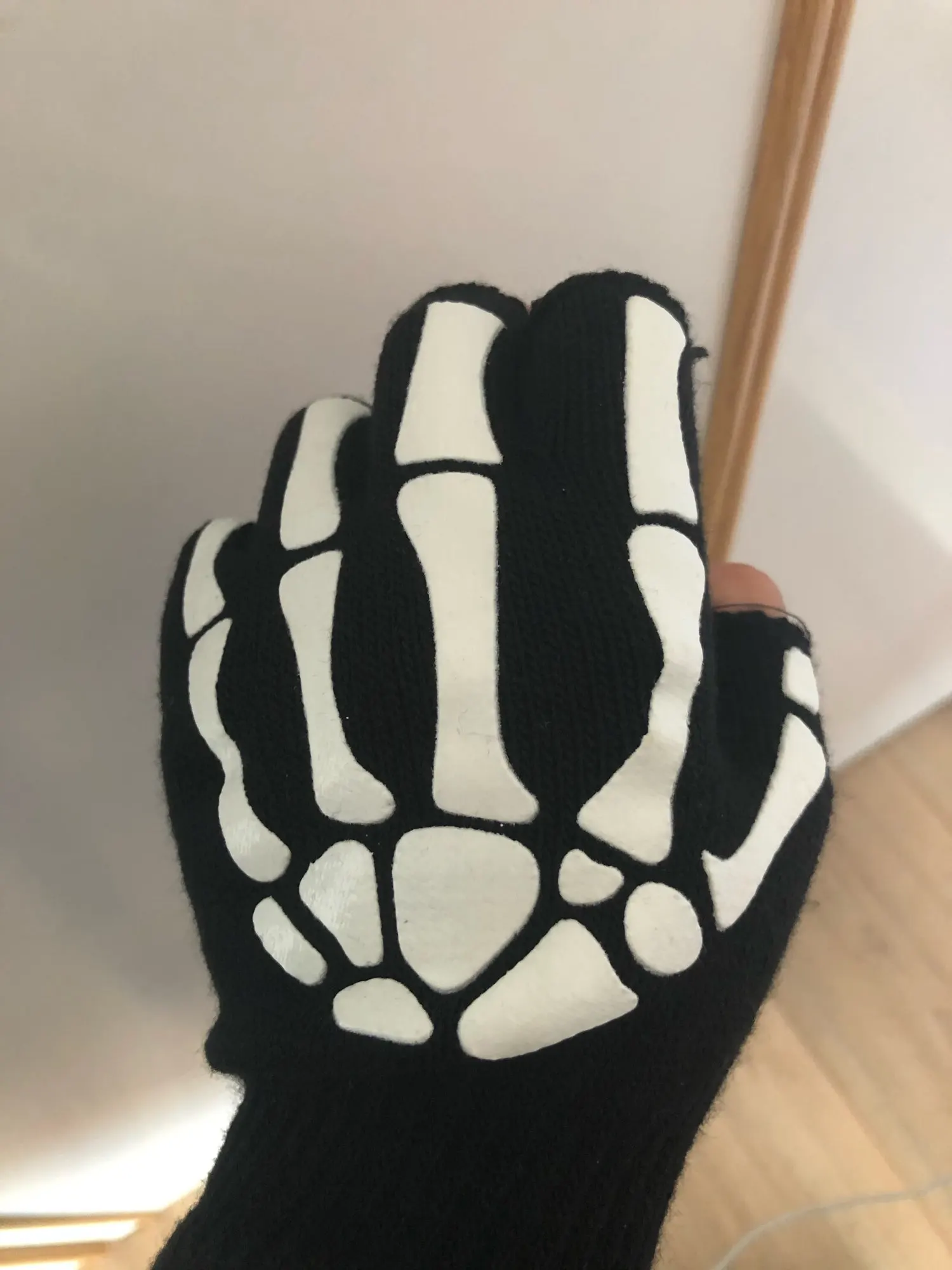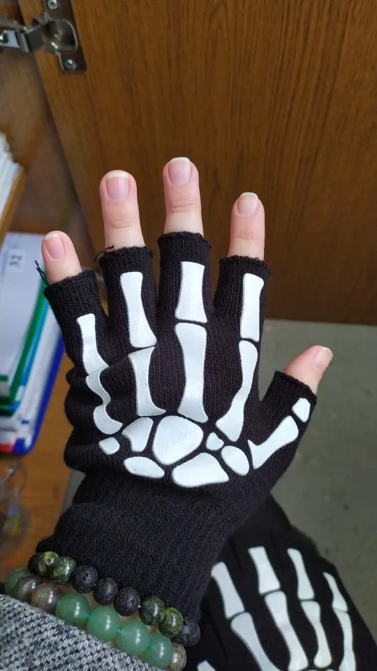 О, мой Бог, эти перчатки в буквальном порядке совершенны. Материал на ощупь очень хороший, он также очень теплый, часть скелета очень хорошая, и кончик пальцев идеален! Я уже в восторге от этих перчаток! Я определенно рекомендую их!