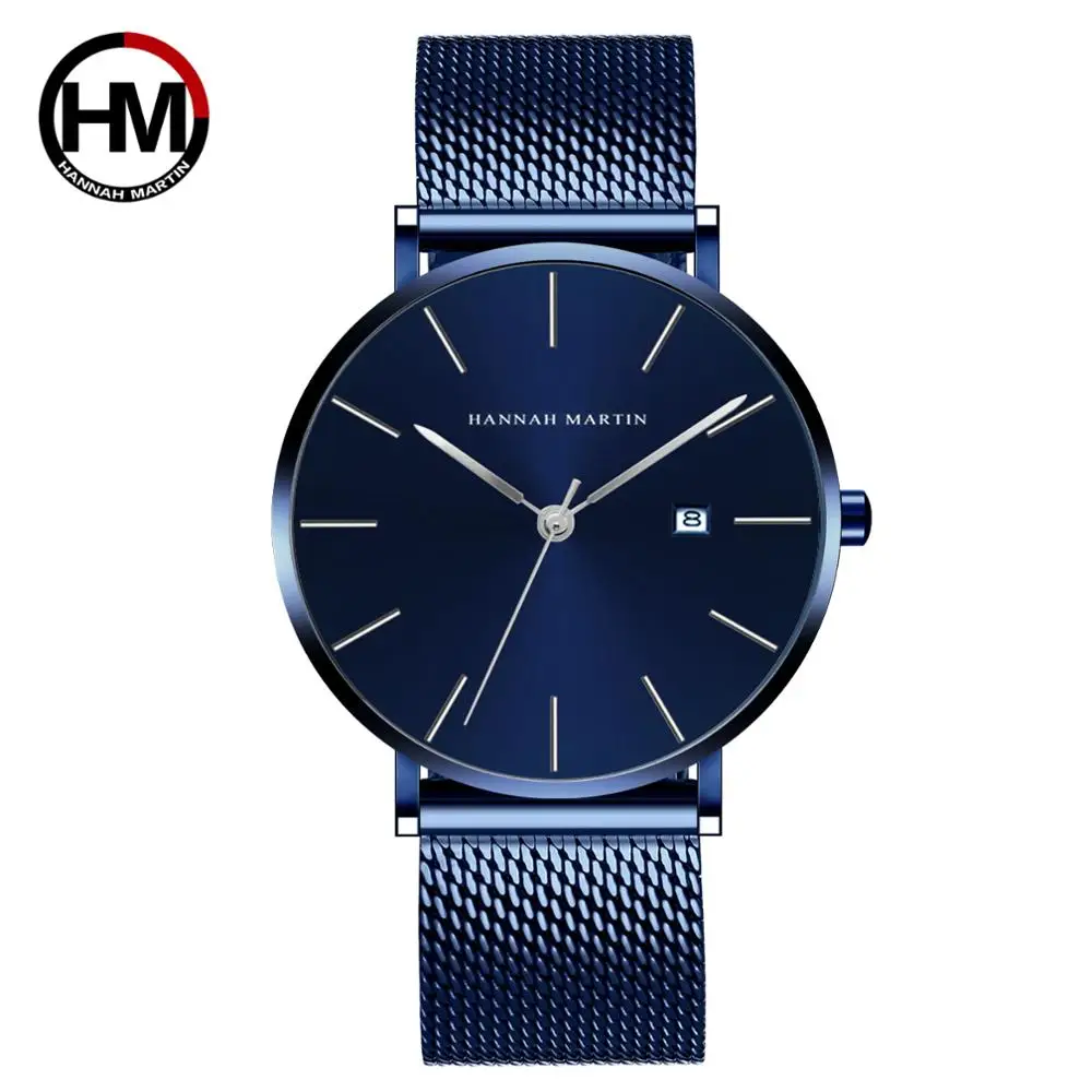 Классические мужские часы Bauhaus, темно-синие японские Кварцевые водонепроницаемые, из нержавеющей стали, модные, деловые, с календарем, ультратонкие