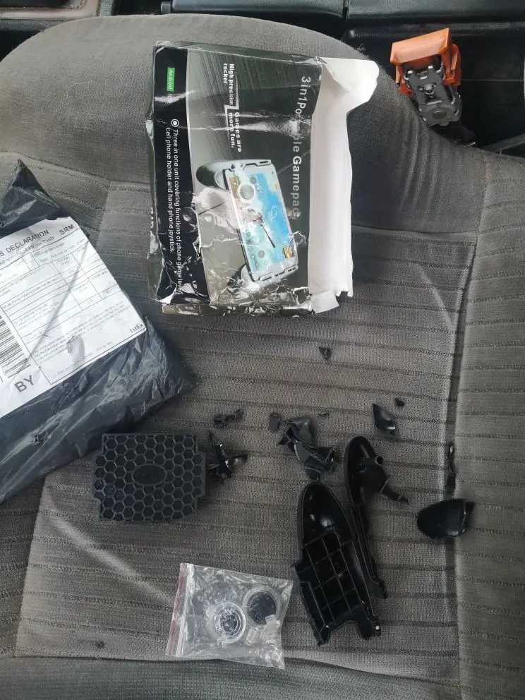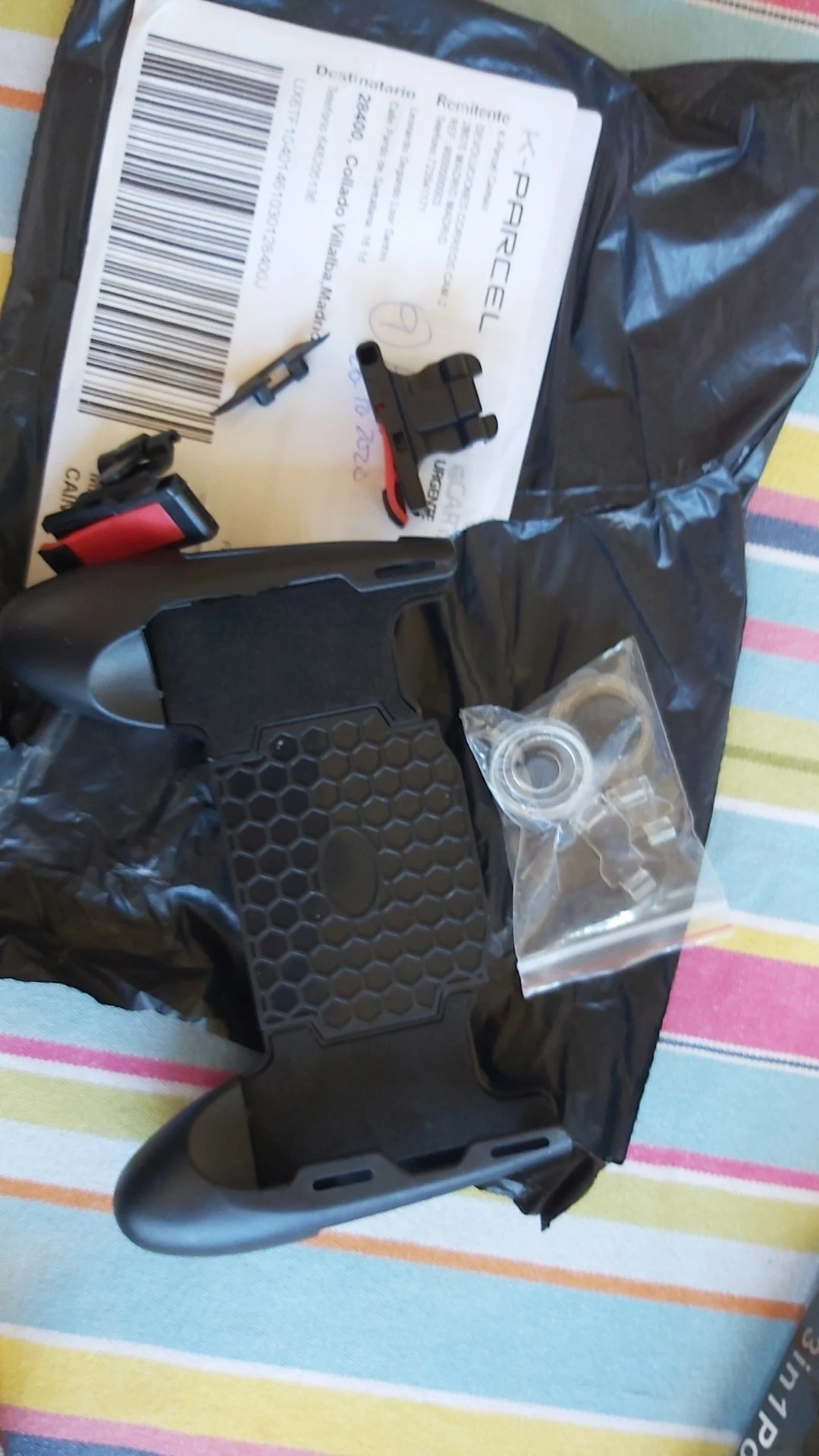 ОБЗОР Товар в тонкой коробке за счет чего она пришла мятая и есть шанс что ваш заказ прийдёт не такой целый как хочется, внутри коробки: держатель для телефона, два триггера( в отдельном пластиковом кейсе, и продавец положил вместо одного два скроллера, спасибо). Уплотнители из паралона по сути бесполезны потому что не выступают из держателя как видно на фото, поэтому телефон без чехла или со скользким чехлом может выскользнуть если вы его перевернете. Также если у вас узкий или маленький экран, то за счет отсутствия нормальных уплотнителей телефон просто утонет в держателе и вы не сможете установить триггеры, потому что для триггеров не хватит сзади места (проверено на iPhone 7), поэтому рекомендовано для 6" дюймовых и больше экранов. на фото с линейкой всё видно и понятно), с триггерами играть не привычно, за счет механического нажатия теряется скорость действия (прицел, стрельба) поэтому для себя и рекомендую вам взять триггеры которые реагируют на касание.