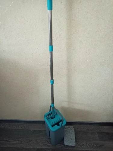 Читала до этого отзывы, поэтому была готова к маленькому размеру ведра. У меня рост 174, швабра подходит ( писали, что под маленький рост). Со своими функциями справляется. Хотелось бы, чтобы лучше отжимала, мокровато. Для больной спины- самое то, и детям в удовольствие теперь лишний раз помыть полы.