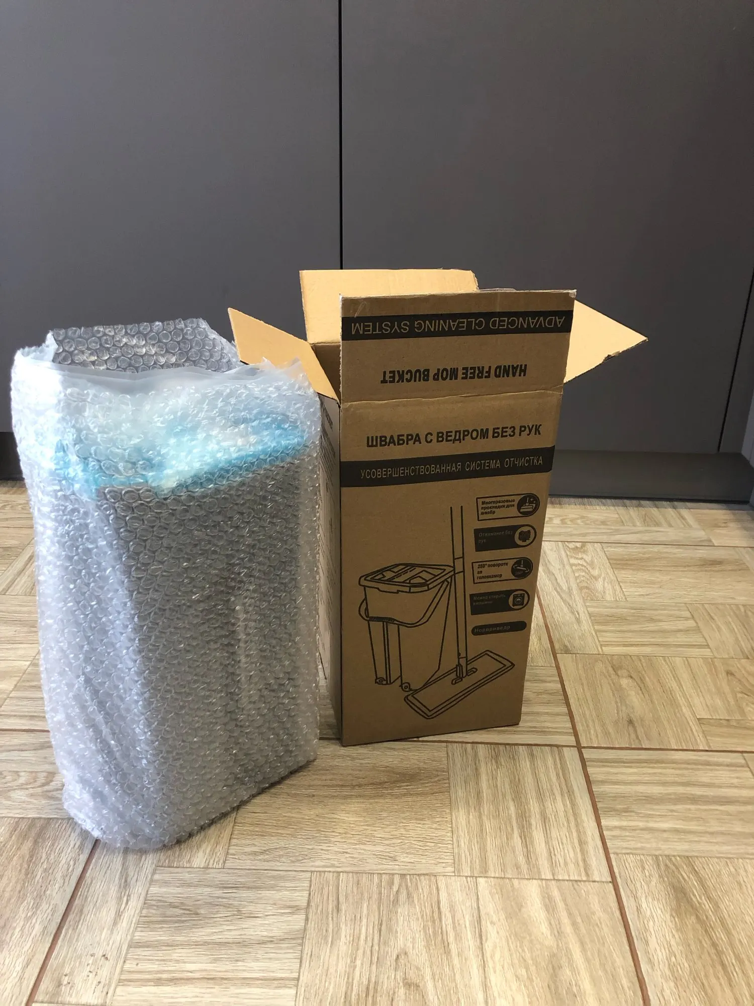 доставили до двери, упаковано хорошо, все целое, соответствует описанию, мусор убирает, отжимает, пользоваться удобно, в комплекте 7 тряпочек