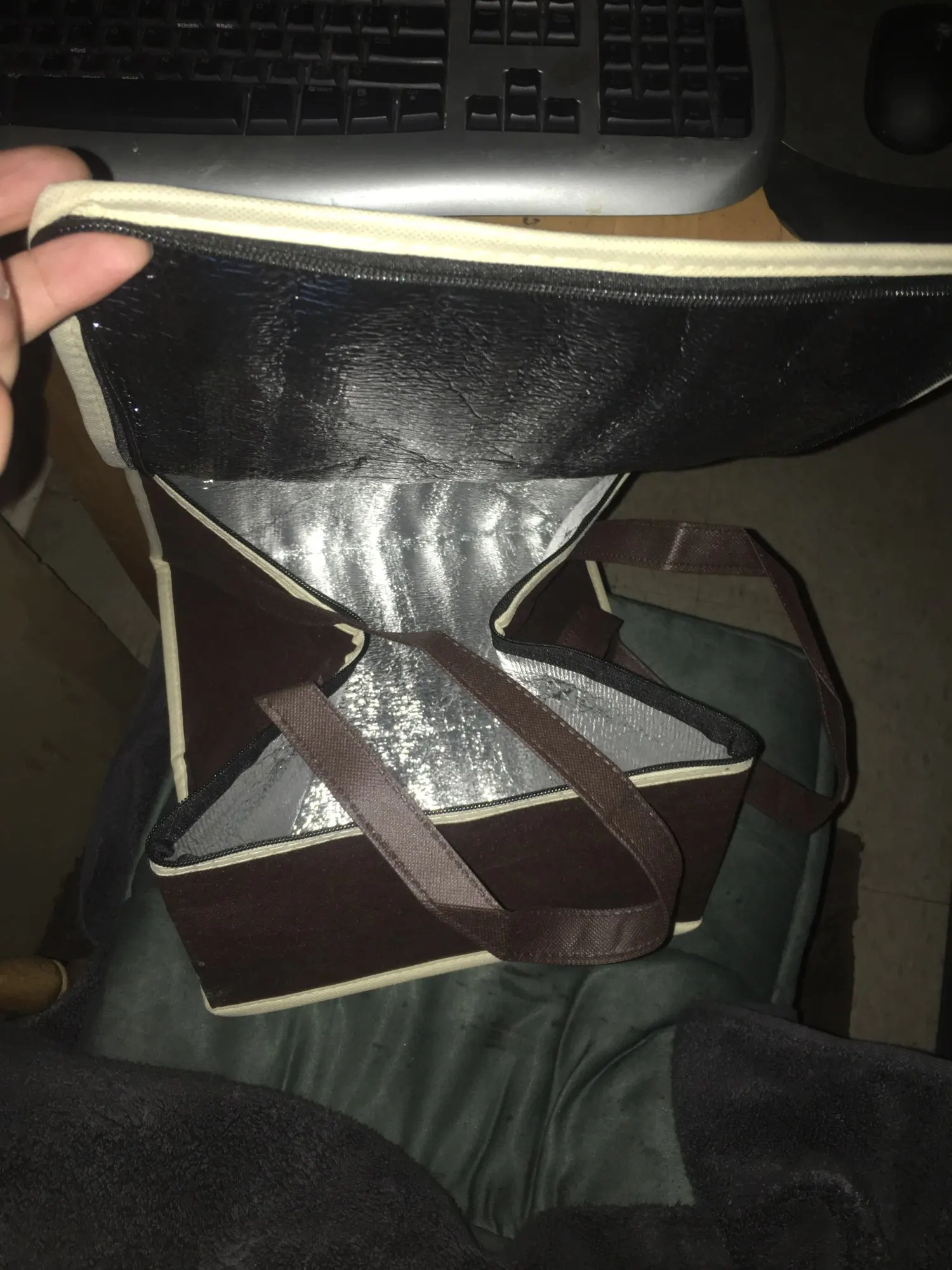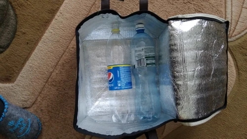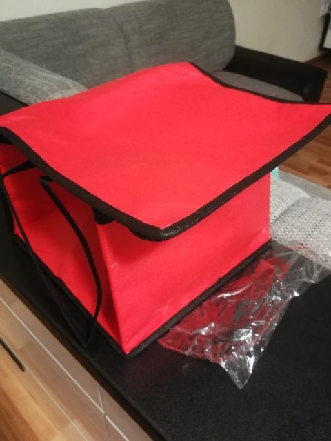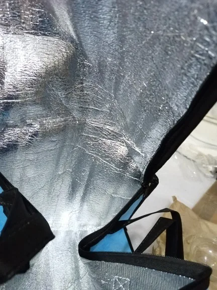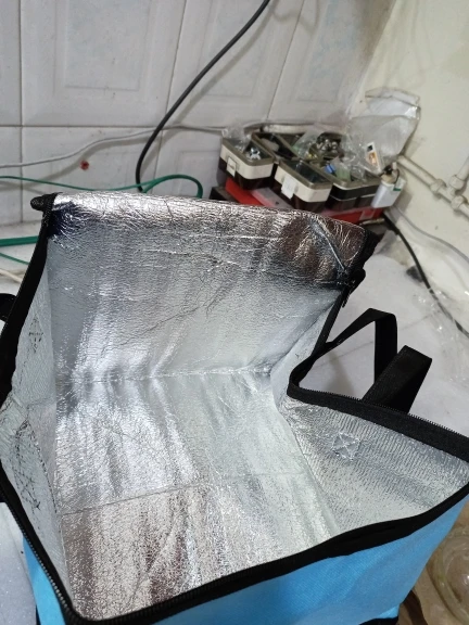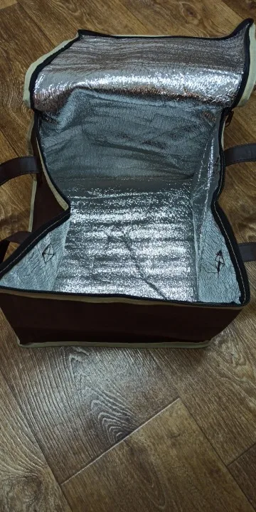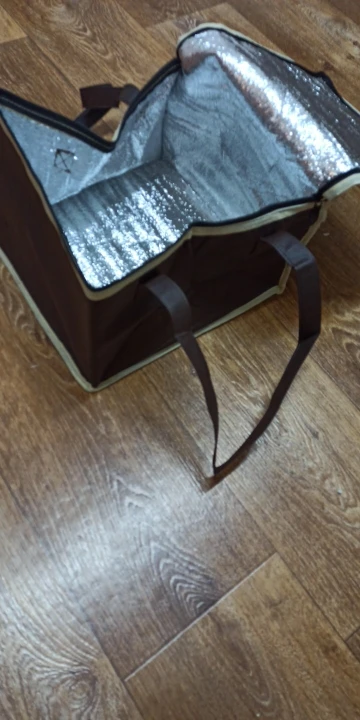 Купил 2 соседних размеров и вложил одну в другую, получилась усиленная двойная термосумка. Носить за ручки не буду, ручки и сама ткань хлипковаты, у меня подобная уже порвалась. Будет конструция дома стоять или ездить внутри другой сумки