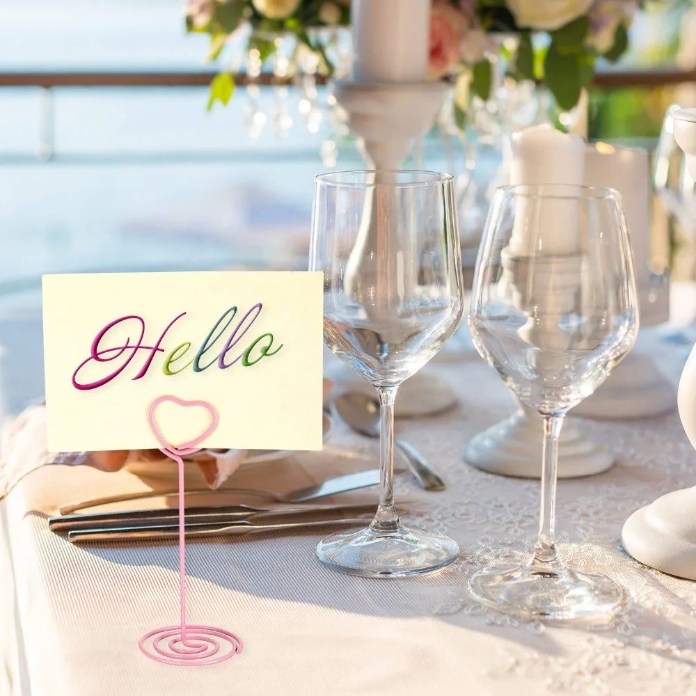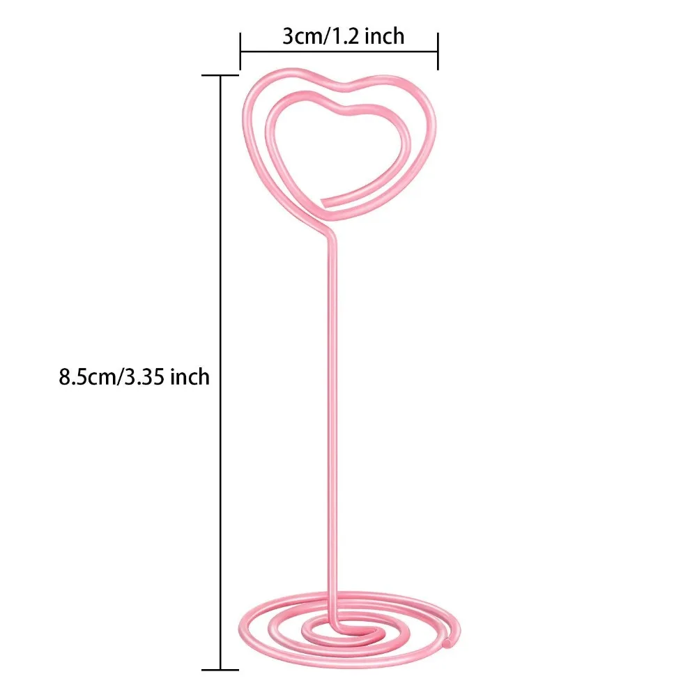 ● Элегантная форма сердца: милые настольные фотозажимы с держателем в форме сердца и спиральным основанием. ● Служить в качестве памятки, фото, заметки, бумаги, имя карты клип, изображения и настольные подставки под номера. ● Идеально подходит для записи неожиданных офисных задач; Идеально подходит для свадебных торжеств, помолвка, юбилей, вечерние, день рождения, и душа ребенка.
