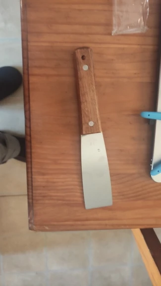 не заточен, деревянная ручка приделана кривова-то.