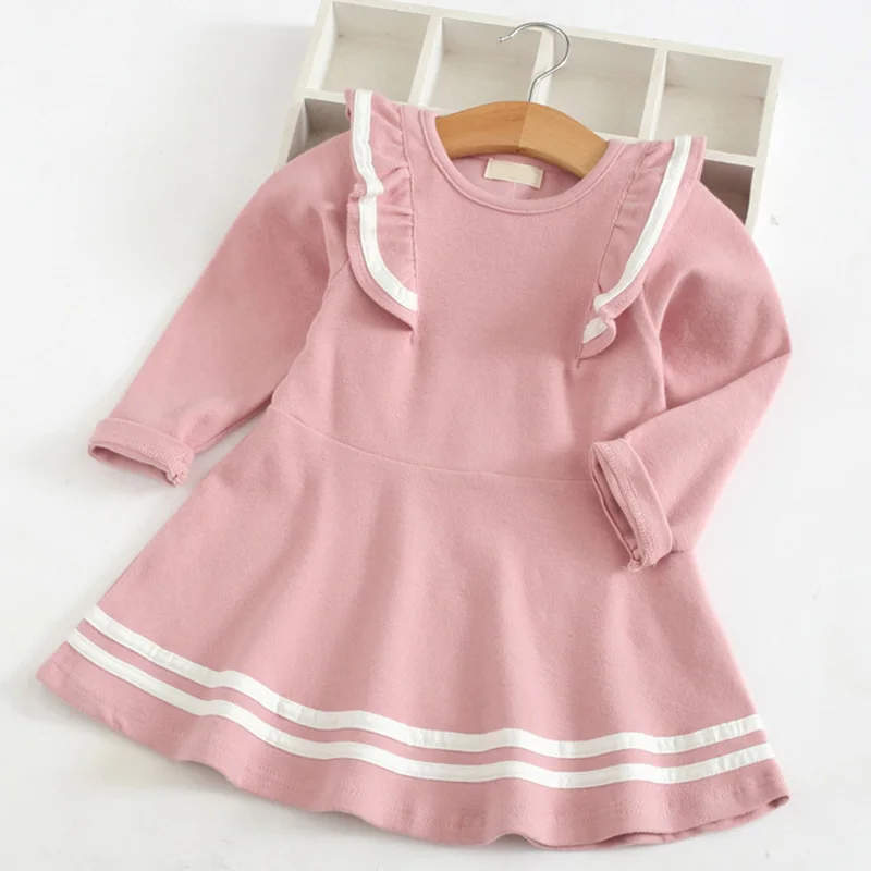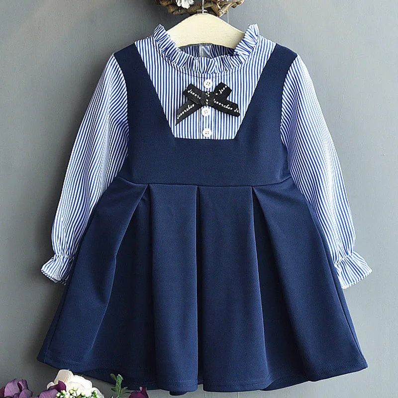 Платье принцессы с длинным рукавом и бантом, в полоску