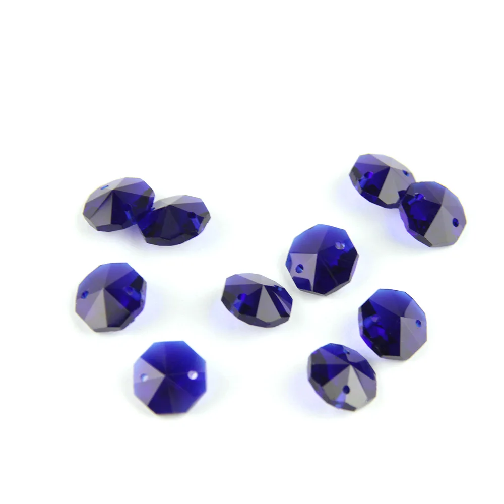 Стеклянные Восьмиугольные бусины, 50 шт.лот, 14 мм, смешанные цвета, оригинальные в 2 отверстиях для хрустальных люстр, запчасти для DIY