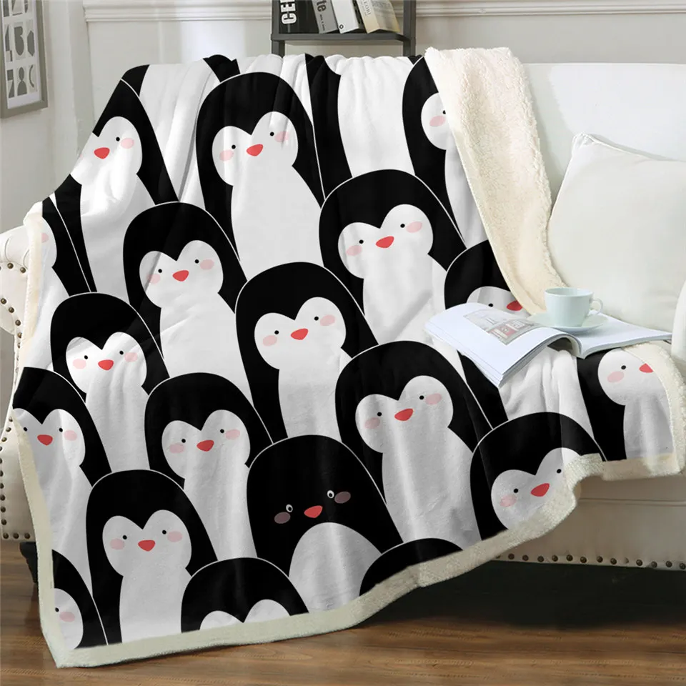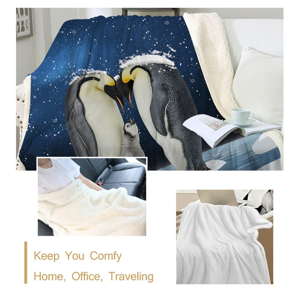 BeddingOutlet семейное одеяло в виде пингвина для кровати постельное белье с защитой животных 3D шерпа Флисовое одеяло синее плюшевое покрывало
