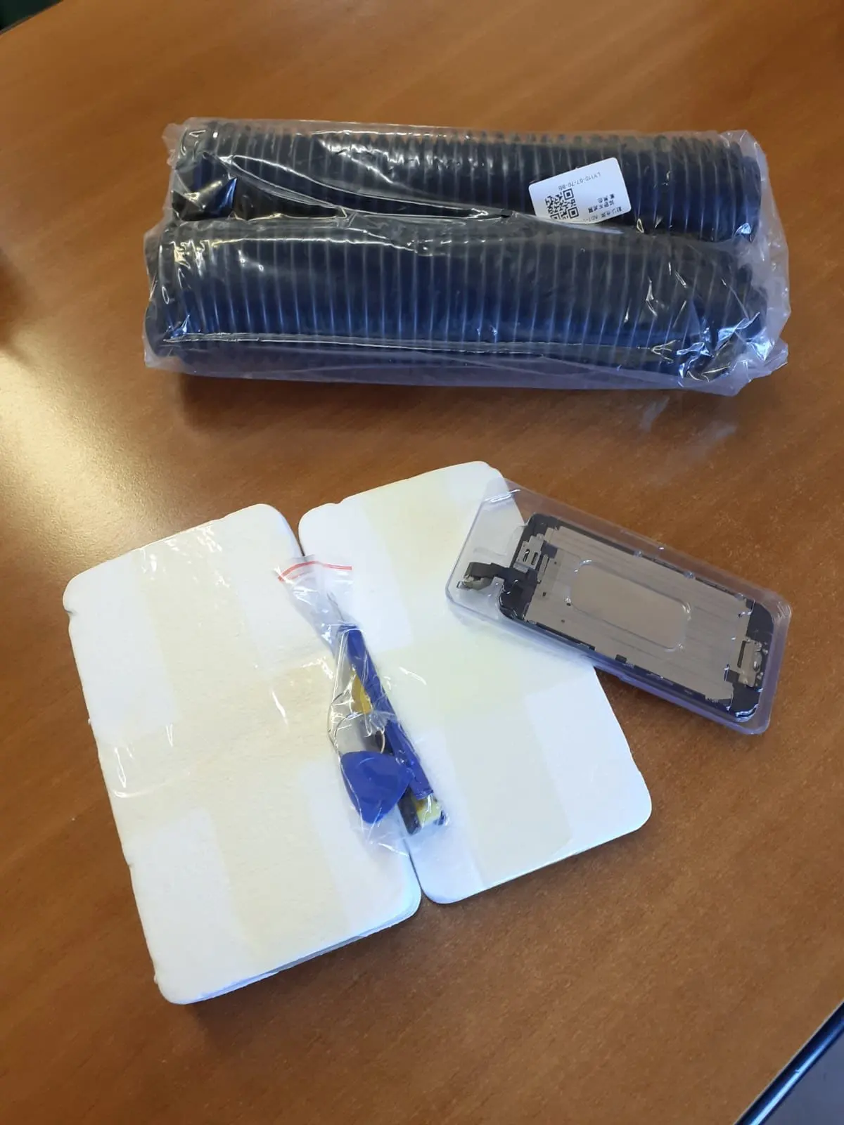 Получил быстро,экран не совсем хорошего качества,при нажатии на кнопку home,экран продавливается тем самым образом плывет и появляются синии пятна. Еще пришлось колхозить,чтобы не появлялись белые пятна при защелкивании в корпус.Были пятна в районе аккумуляторной батареи,хотя батарея не была вздутая,это было из-за того,что шлейф кнопки хоум под металлическим экраном был вставлен криво,и пришлось еще раз еще раз разбирать телефон,чтобы убрать 2 назойливые белые точки.В остальном все отлично,олеафобное покрытие есть,палец скользит,цвета передача близка к оригиналу. Фронтальная камера оригинальная,с маркировкой эпл на шлейфе,снимает тоже хорошо!