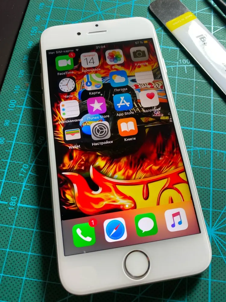 экран близок к оригиналу покрайней мере в цветопередачи отличий не нашел кнопка домой функционирует но отпечаток не работает пришлось ставить старую кнопку динамик отличный четкий в обще за такие деньги норм менял сам дома
