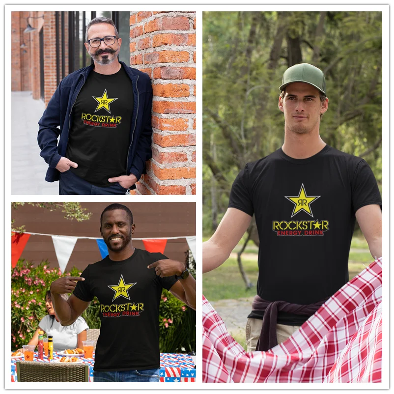 Футболка с надписью Energy Drink, футболка с изображением рок-звезд и энергетических напитков, базовая футболка из 100 хлопка, Мужская футболка с коротким рукавом