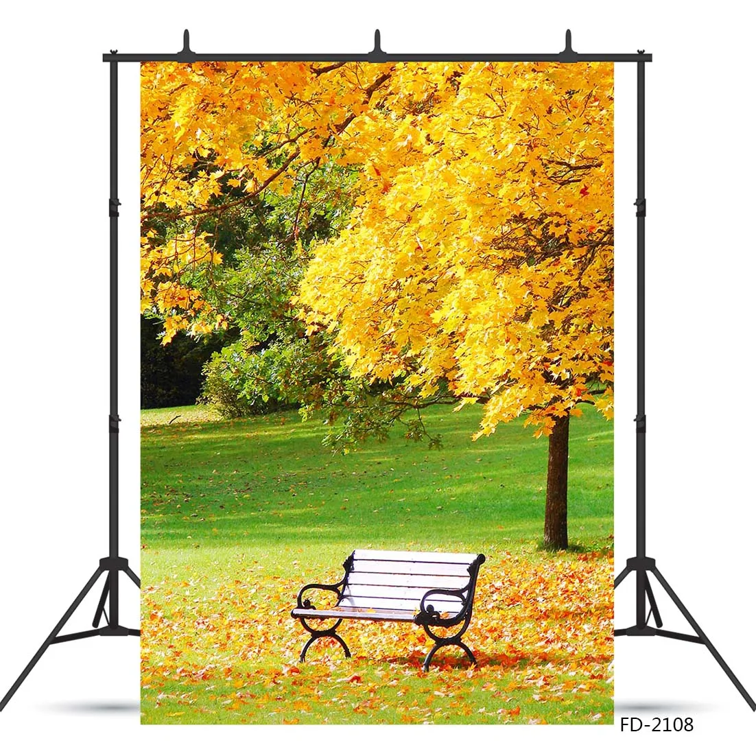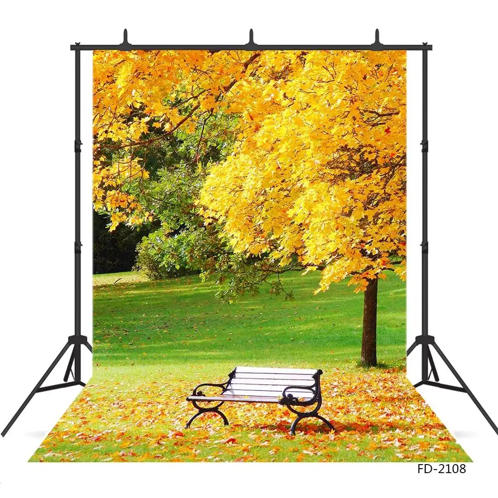 Желтое дерево опавших листьев скамья фотографического Фоны виниловые фоны для студийной фотосъемки для Камера фото фотостудия фотография