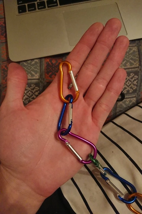 пришло очень быстро, спасибо продавцу, карабины красивые,вроде прочные