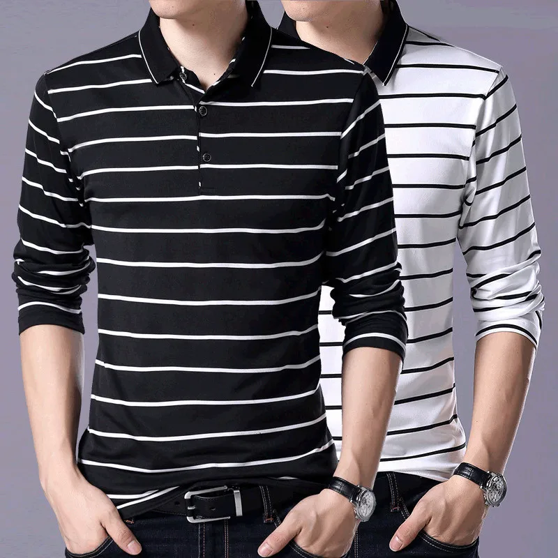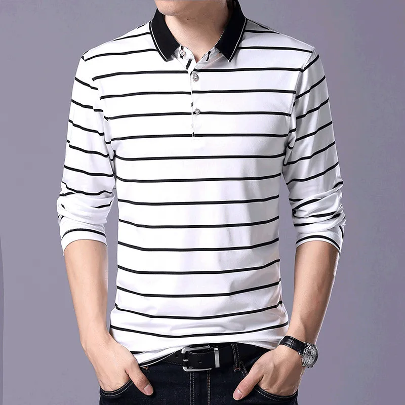 Мужская хлопковая футболка TFETTERS, Повседневная футболка в полоску, с длинным рукавом, приталенный силуэт, весна-осень 2021
