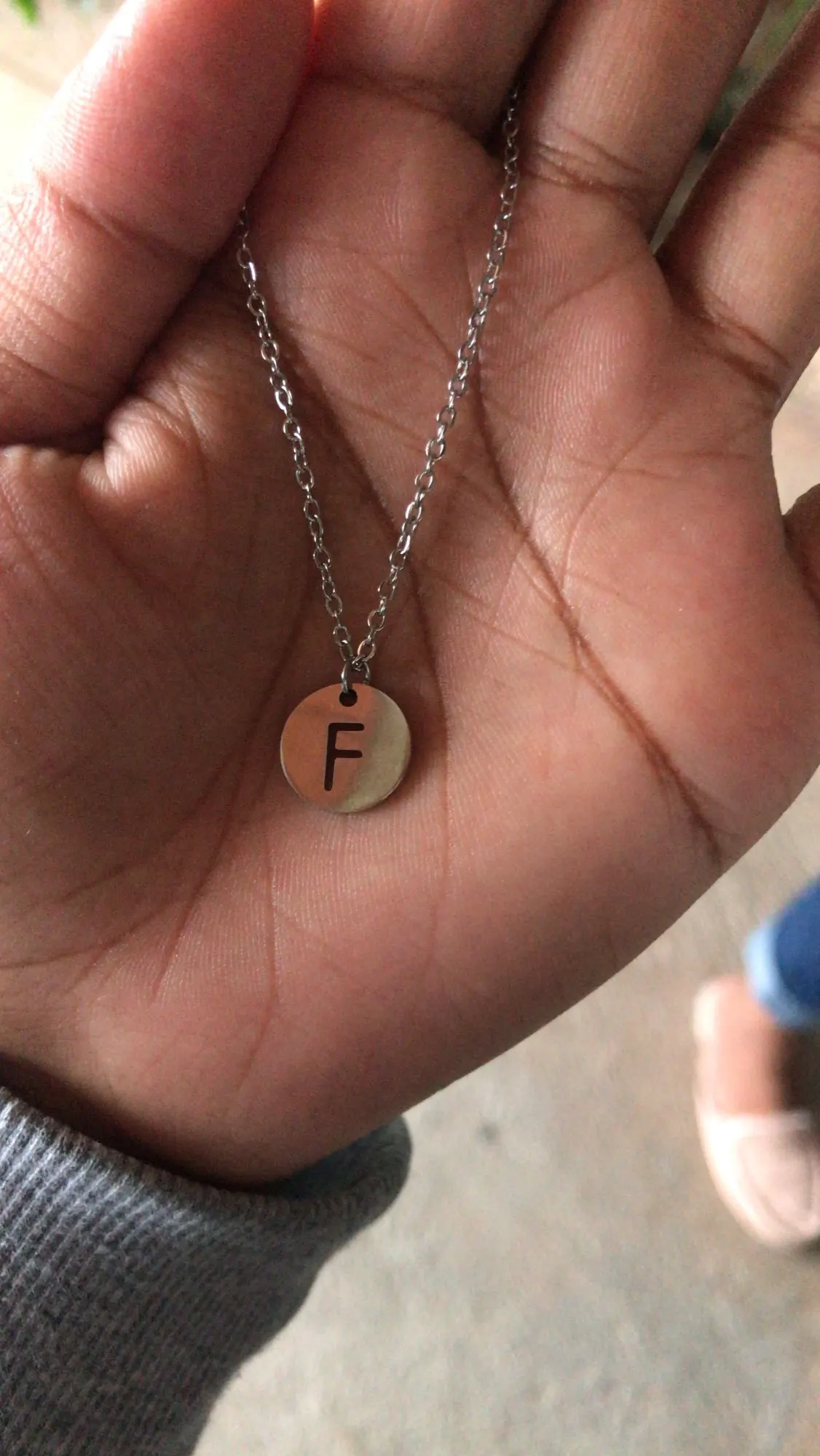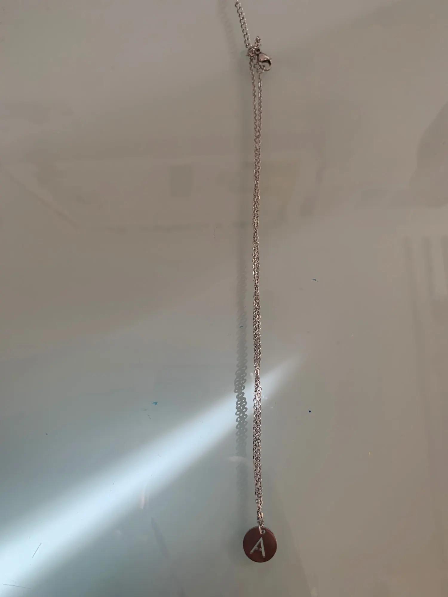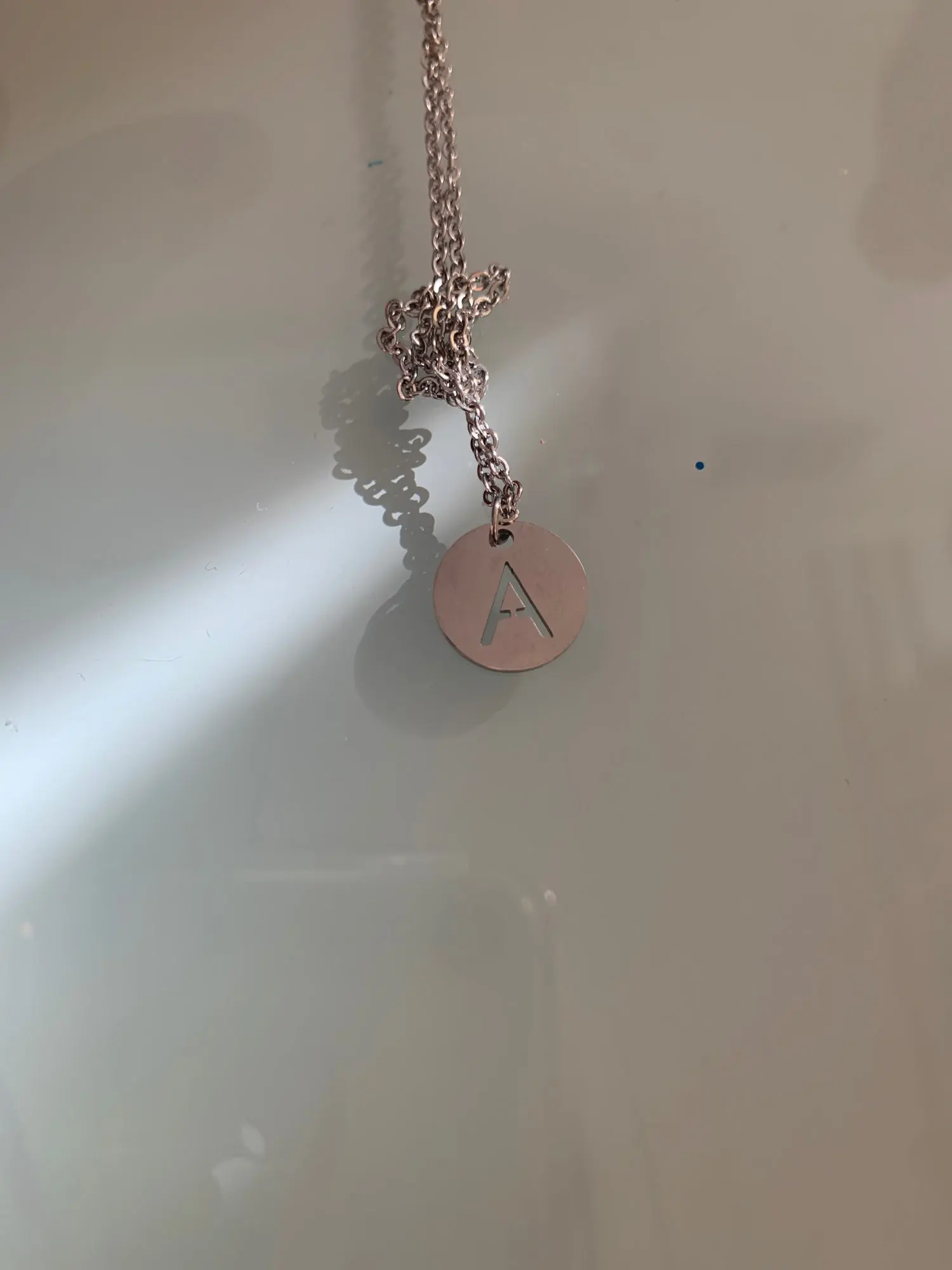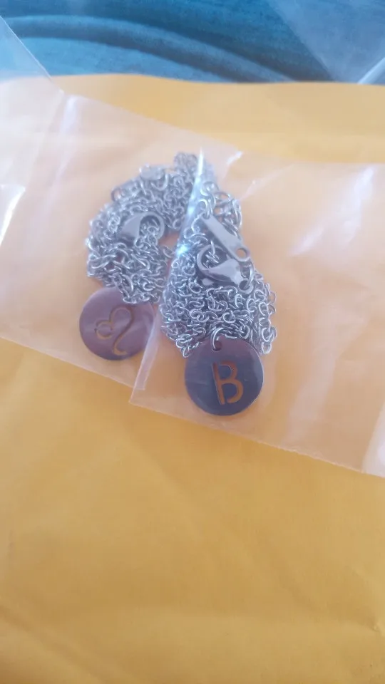 Очень хорошее ожерелье, я приезжаю в идеальном состоянии, буква бесконечна, то есть она выглядит в другом месте, как на очень хорошей фотографии, которую я люблю, С водой вы получите кофе, потому что это не Настоящее серебро, но если они удаляют его, когда вы принимаете душ или что-то в этом роде, это будет хорошо!
