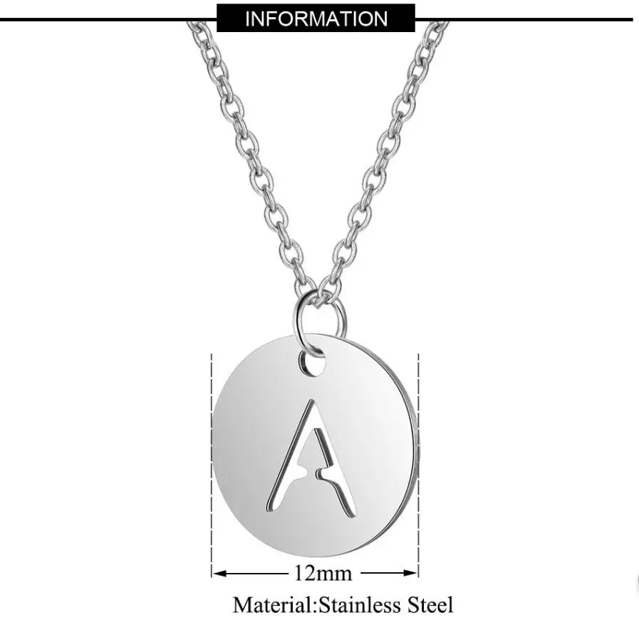 A-Z ожерелье с именем 26 инициалов 12 мм, круглая подвеска, буква алфавит, ожерелье из нержавеющей стали 316L, женские чокер в подарок