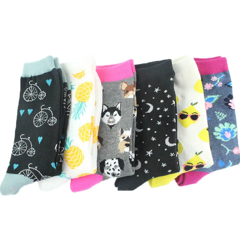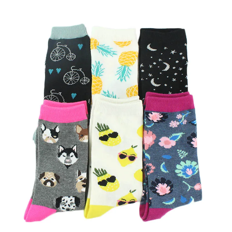 Носки женские из чесаного хлопка, с рисунком ананаса, Мопса