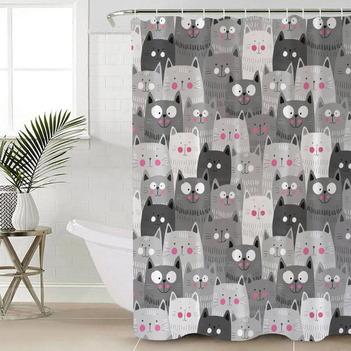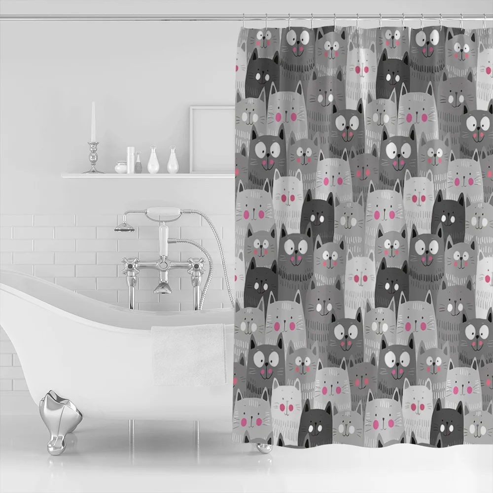 Занавеска для душа в ванную комнату с изображением Серого Кота