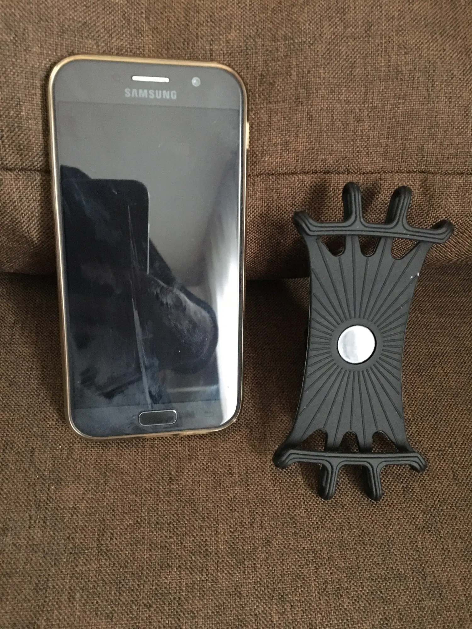 хорошая вещь, держит телефон разных размеров, можно прицепить на велик, на коляску, куда угодно. можно просто надеть эту штуку на телефон и поставить на стол, стоит под углом как с подставкой