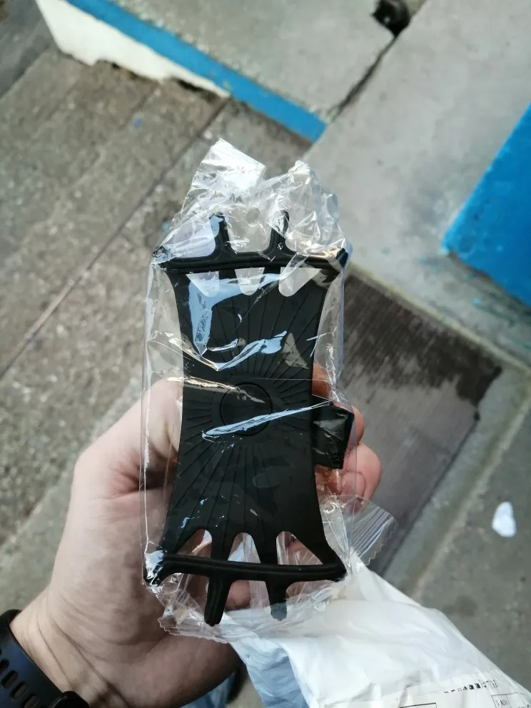 Посылка шла 2 мес, без отслеживания. Сам держатель телефон резиновый ( мягкий) , телефон вставляется в резинку, так что упасть он не сможет. Для разворота телефона крутиться легко ( вертикаль горизонталь). В общем держатель хороший