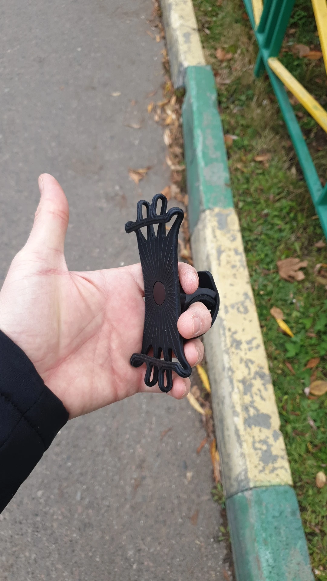 Шёл около месяца в Москву, на айфон 11 про Макс налез легко, на коляске держится отлично, подойдёт на ручку любого диаметра