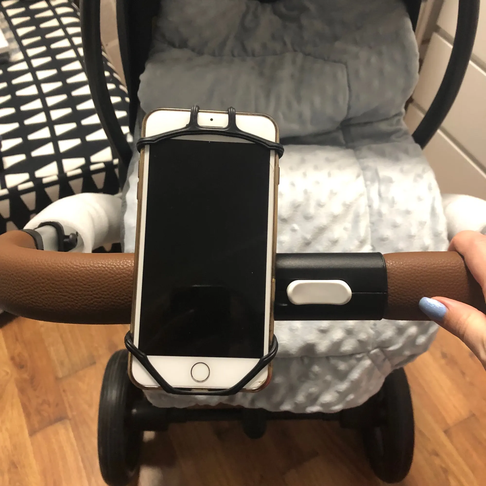 Очень удобный держатель,телефон отлично держится! Легко и быстро можно снять с ручки коляски,это большой плюс,когда нужно где-то оставить коляску.
