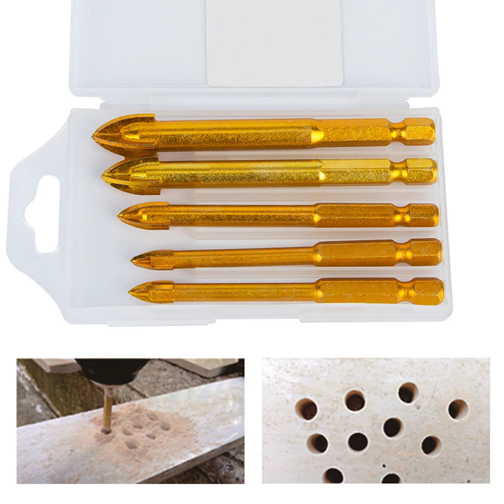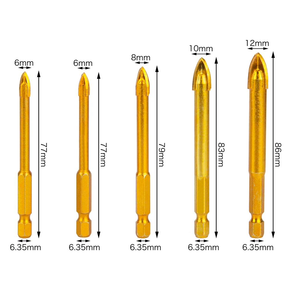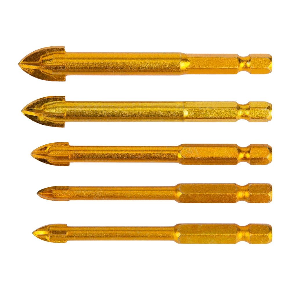 Сверла с крестообразной головкой, 6681012 мм, с титановым покрытием, 14 дюйма, шестигранный хвостовик, для керамической плитки, стекла, зеркальное сверло, 5 шт.
