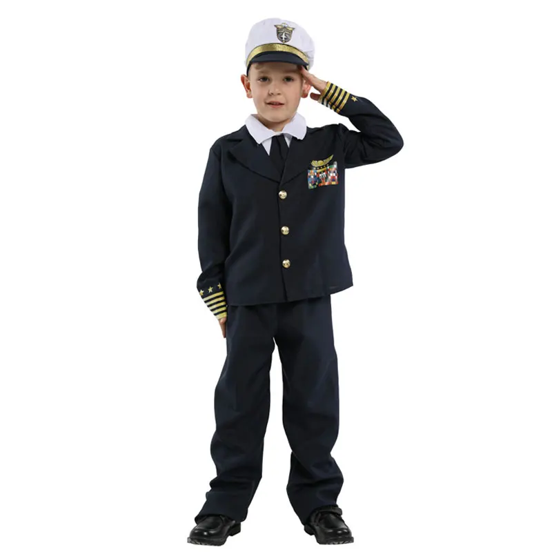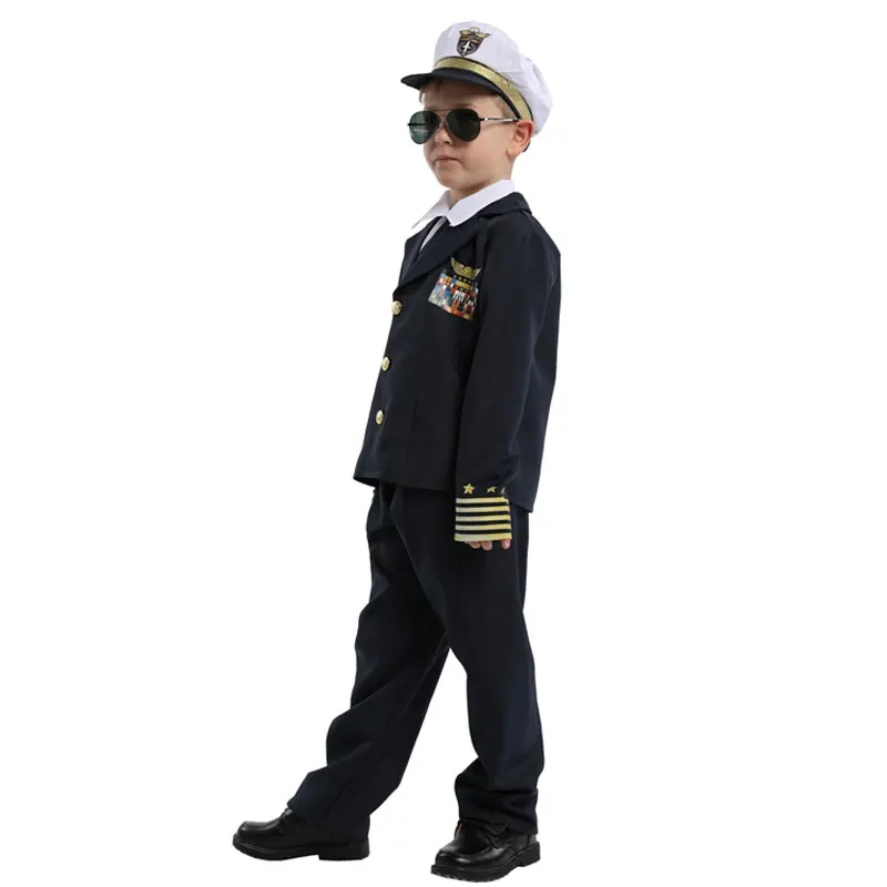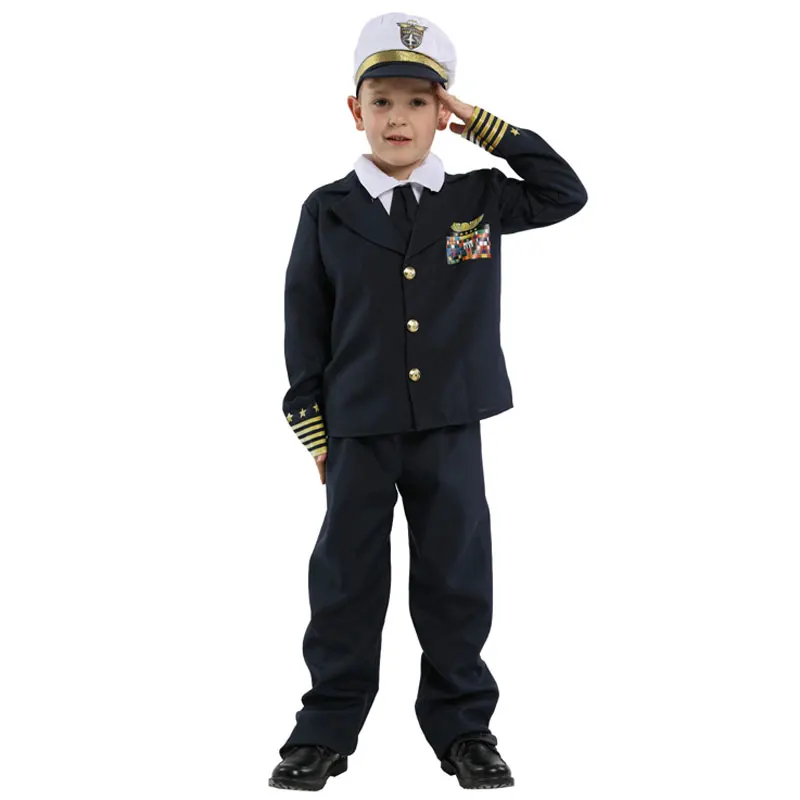 Детский костюм адмирала капитана пилота, униформа для мальчиков на Хэллоуин, Пурим, карнавал, вечевечерние, Марди Гра, маскарадное платье