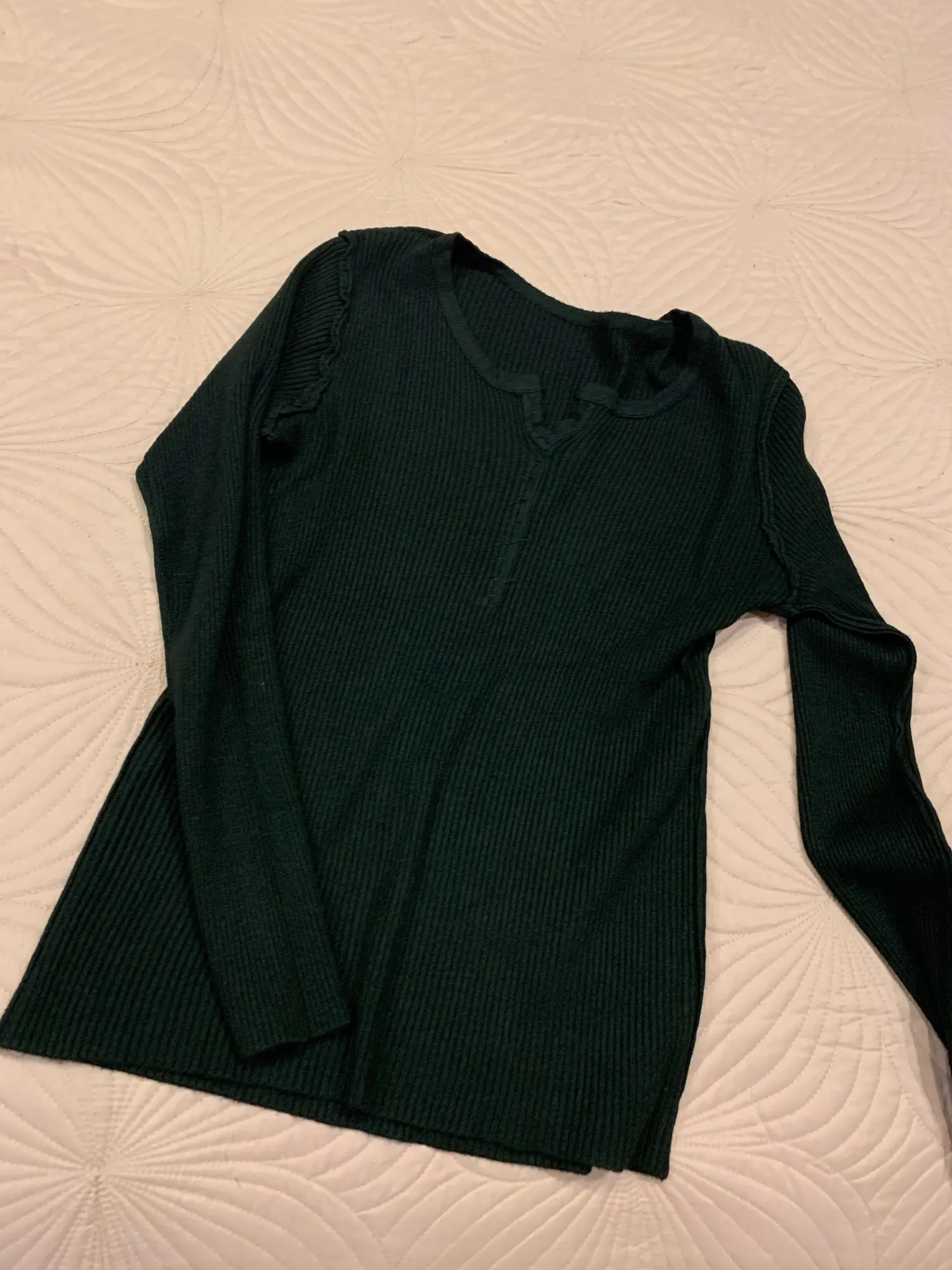 Действительно красивая кофта, приятного цвета темной-темной травы. Сшита ровно, нитки не торчали. НО: звезду снимаю, т.к. есть стойкое чувство, что ткань быстро закатается (на ощупь состав как будто - вискоза / акрил). Но за такие деньги это не страшно) закажу вторую если что