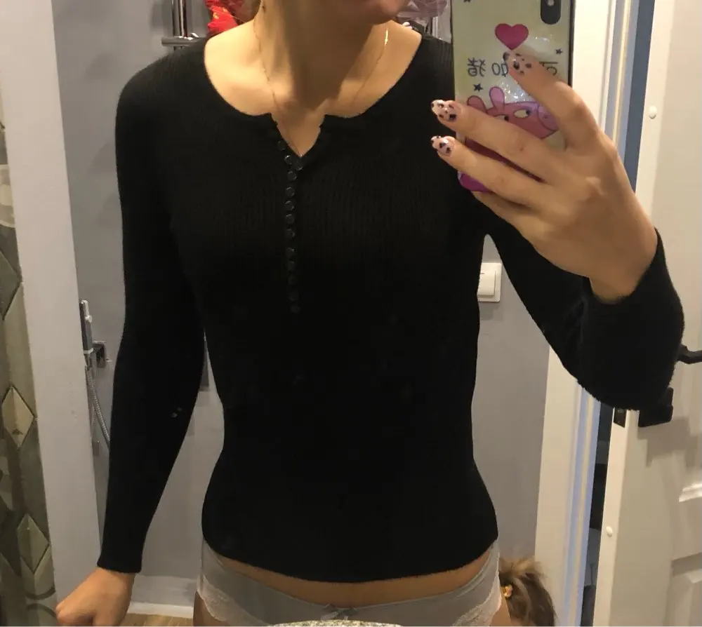 Сексуальная и элегантная водолазка,взяла чёрную так как чёрная универсальная ,подойдёт под любой прикид и образ, у меня 42 размер ,так и так пойдёт ,ткань мягонькая,пуговки пришито ровненько,мне понравилась,закажу ещё в другом цвете! Советую непременно к покупке! Здесь в Москоу такие стоят от 1000-1300 ха ,я лучше на али возьму две) Летела моя посылочка 4 недели до Москвы ,спасибо больше продавец!))