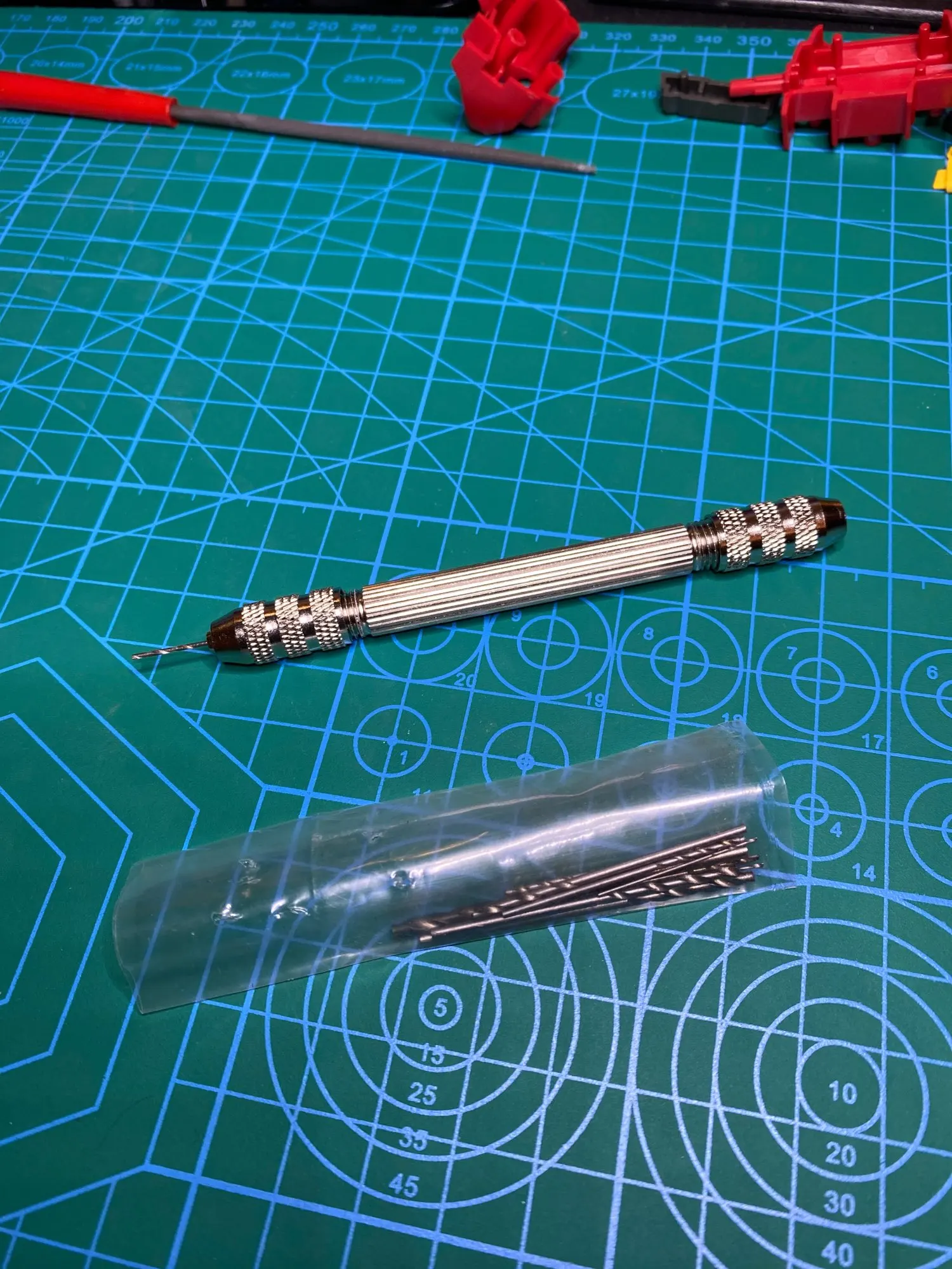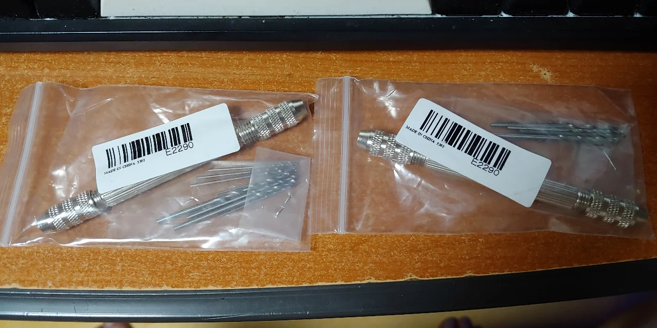 Задумка в целом неплохая. Цанги закусываются в минидрели, сами цанги, что были в составе минилрели со смещёнными центрами, эксплуатировать невозможно. Свёрла в комплекте никакие, те, что меньше миллиметра кривые и как-будто обкусаны на конце.