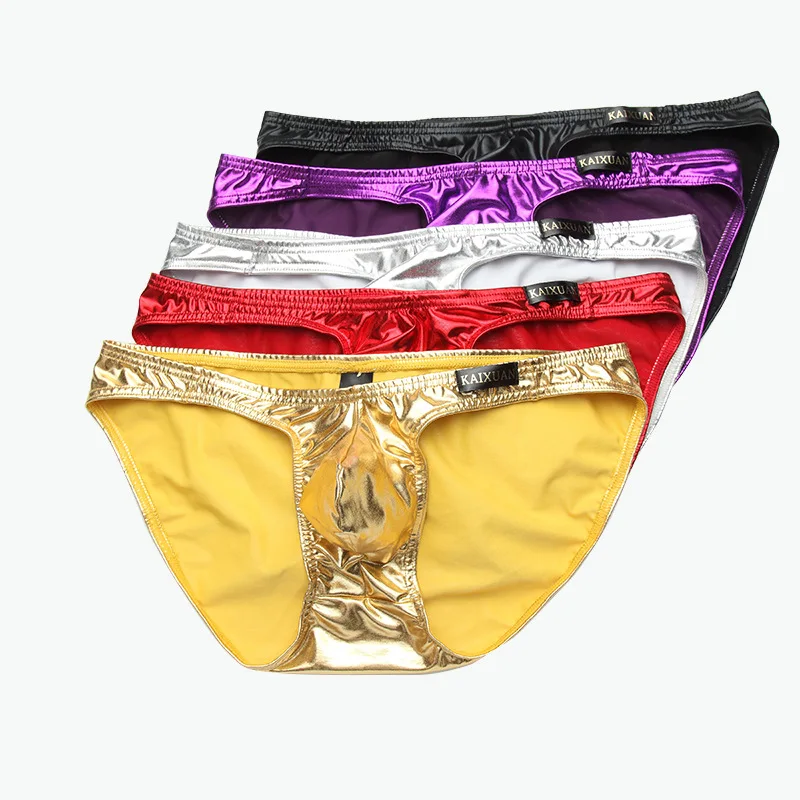 Трусы мужские WJ, бесшовные, с мешочком для пениса, золотого и фиолетового цветов, кожаное бикини
