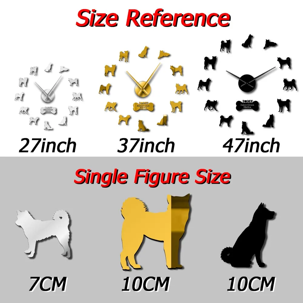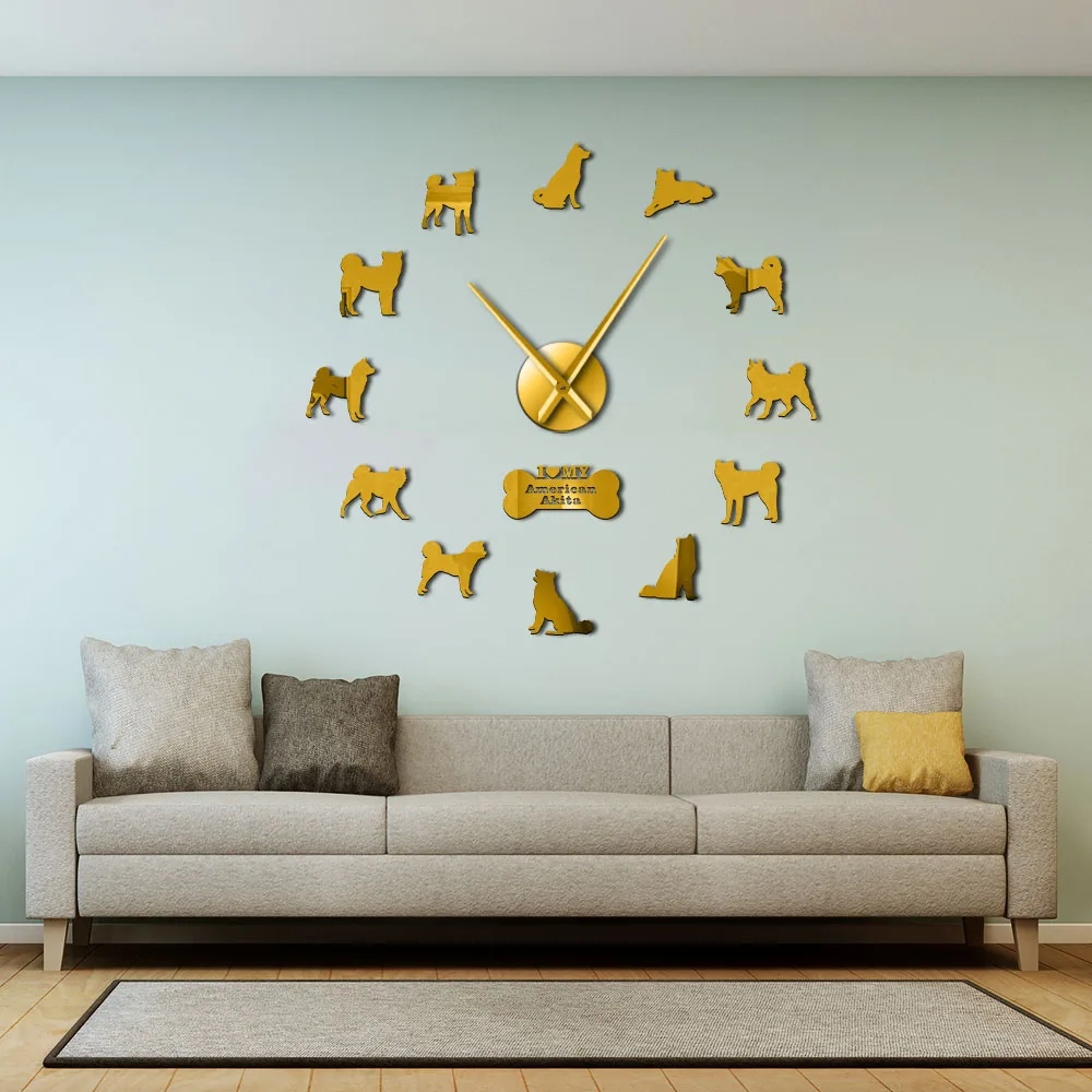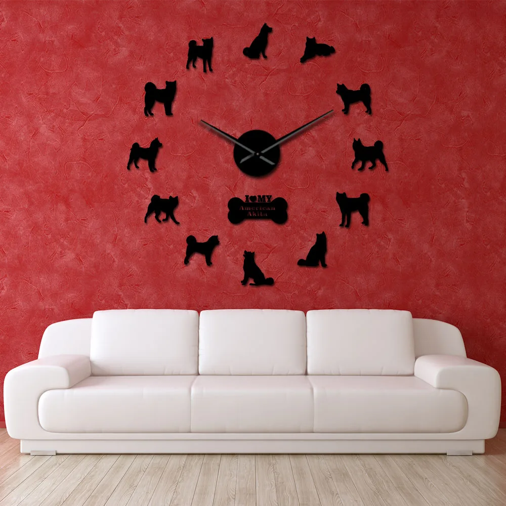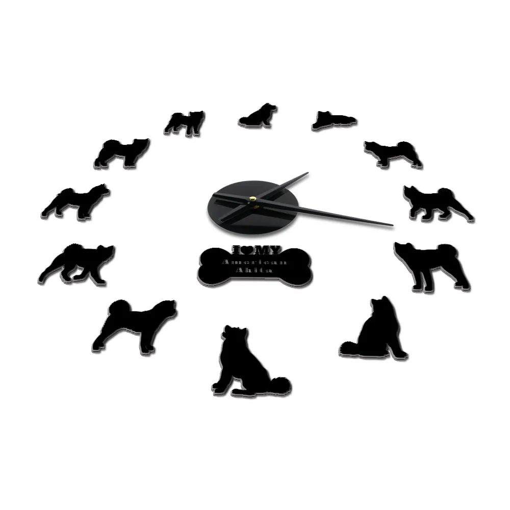 Американская собака породы Акита самоклеющиеся 3D DIY настенные часы Акита владелец подарок гостиная уникальный дизайн Зеркальная Наклейка настенные часы