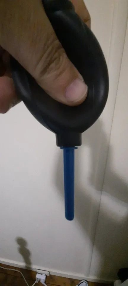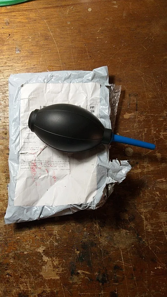 Это подделка. Это не настоящая груша для сдува пыли с оптики. Настоящая должна иметь обратный клапан, чтобы не засасывать пыль.