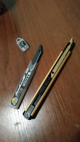 острый нож, хуже olfa конечно же, но за эти деньги, пойдет. немного люфтит. неудобно снимать заднюю крышку, чтобы вынуть лезвия, очень туго, может приработается. лезвия взял в комплекте, они отличные, можно в нормальный нож поставить. ещё косячно выглядит скос у ножа где лезвие выходит, угол 45° вместе 30° у лезвия, дисбаланс) но это личная придирка. можно и обычные лезвия под 45° поставить и будет ок.
