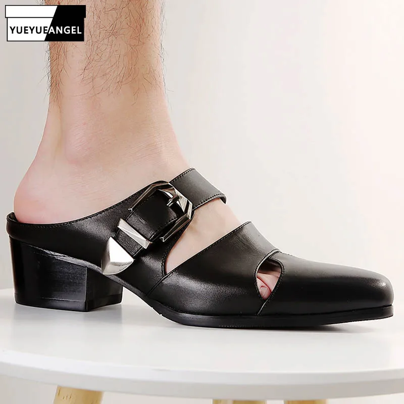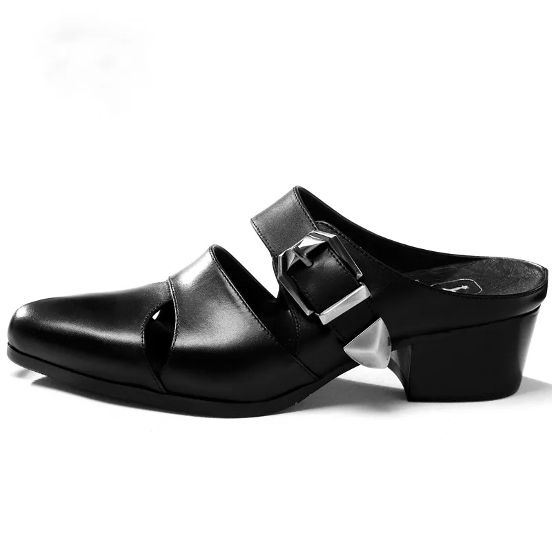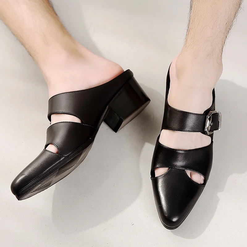 Летние модные мужские тапочки из натуральной кожи с острым носком и пряжкой; обувь из кожи с перфорацией; Новинка 2019 года; Брендовые мужские черные сандалии; высокое качество