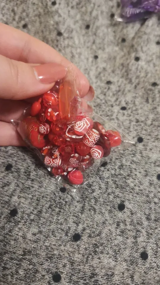 Покупала для поделок, выбирала цвета радуги. Продавец прислал именно те цвета, что и заказала. Единственные, которые не понравились - это красные.. Очень много попалось с белым рисунком, который смотрится дёшево и ещё наполовину стерт.. На картинке продавца красные бусины в своём большинстве именно красные.. Остальные наборы хороши