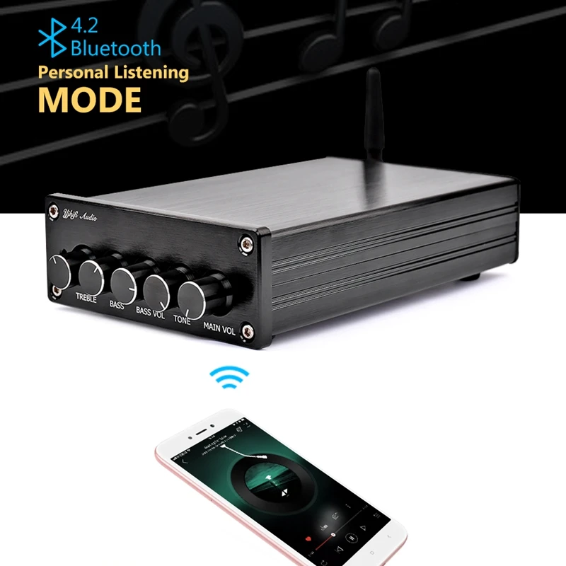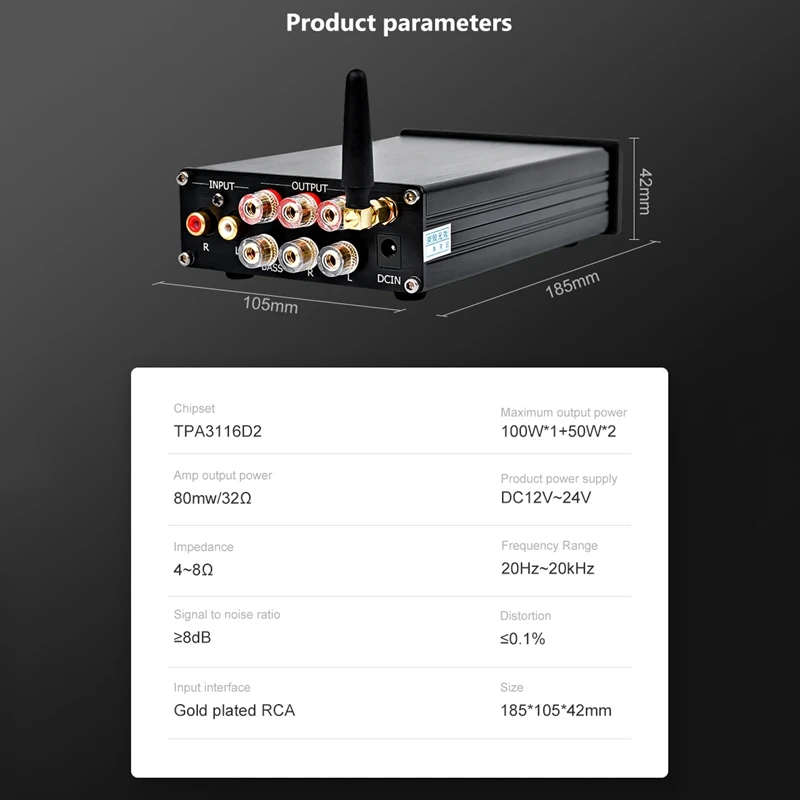 Bluetooth 4,2 сабвуфер аудио усилитель 100 Вт Hifi стерео Tpa3116 цифровой 2,1 канальный Настольный усилитель мощности Amp 50Wx2