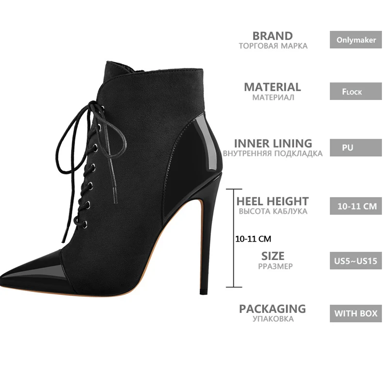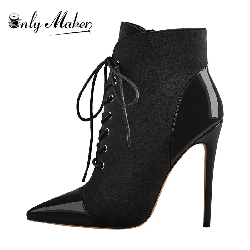 Женские пикантные ботильоны Onlymaker с острым носком 10 см на высоком каблуке со шнуровкой ботинки на шпильке и красные ботинки большого размера