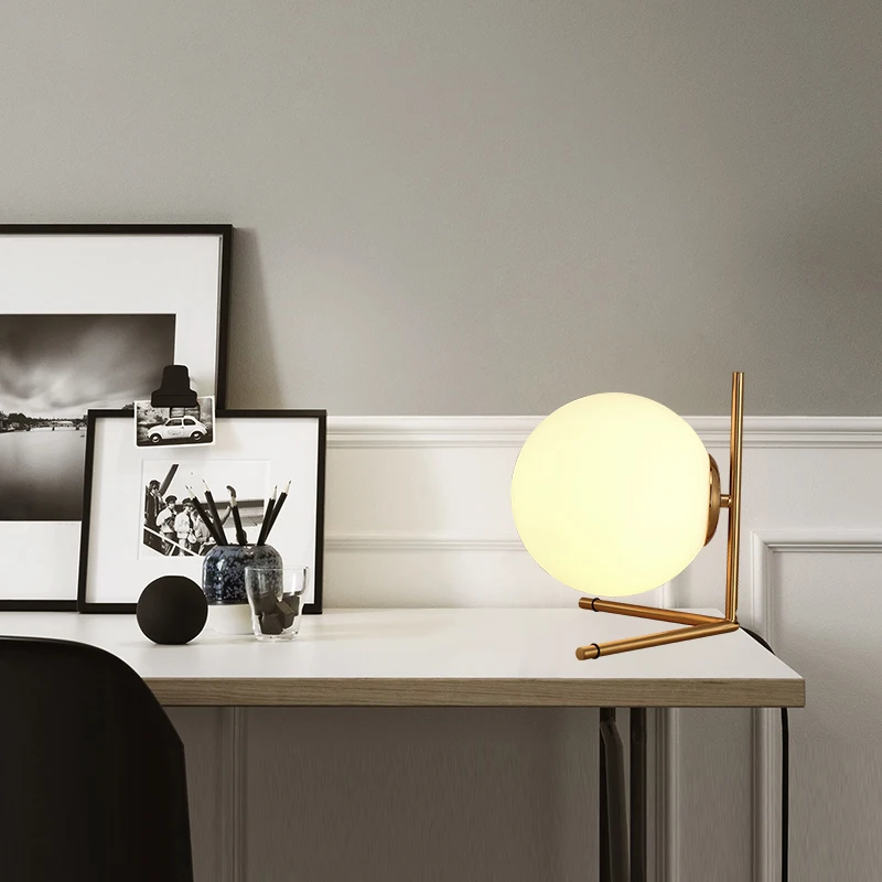Современный светодиодный Настольный светильник, настольная лампа для спальни, стеклянный шар, настольная лампа из полированного хромового золота, скандинавский Настольный светильник, прикроватная тумбочка для гостиной