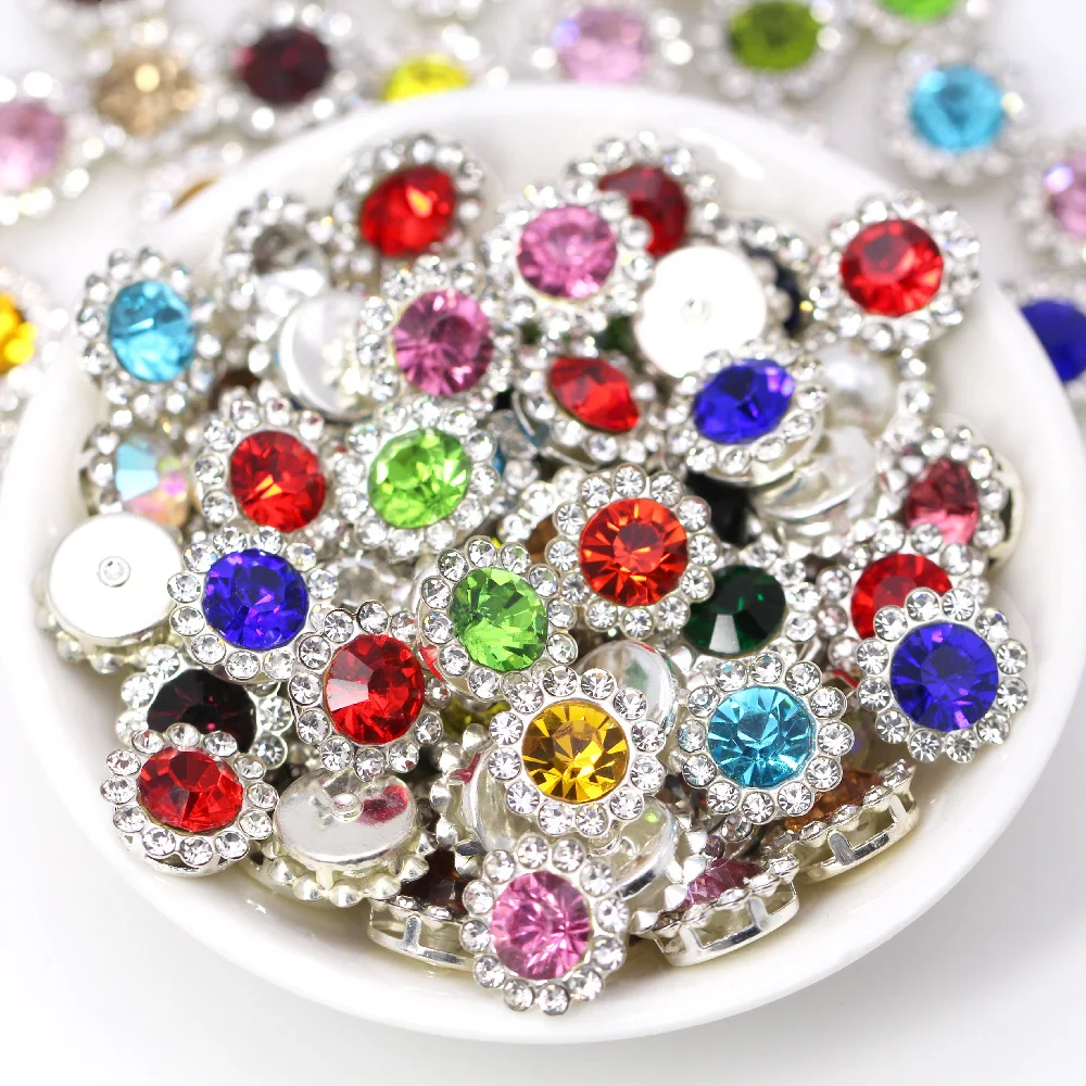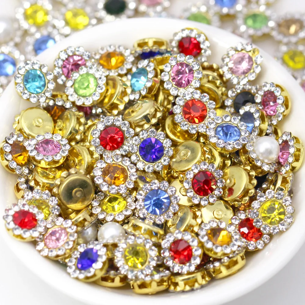 Круглые Цветочные Стразы, разные цвета, плоские стразы для шитья стразы, золотистая и серебристая основа с когтями, металлические кристаллы, украшения для одежды, 20 шт.