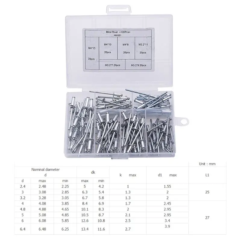 120 шт.компл. M3.2 * 7911 M4 * 81013 GB12618 алюминиевые заклепки для украшения ногтей поп заклепки для мебели набор