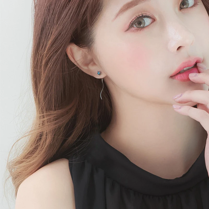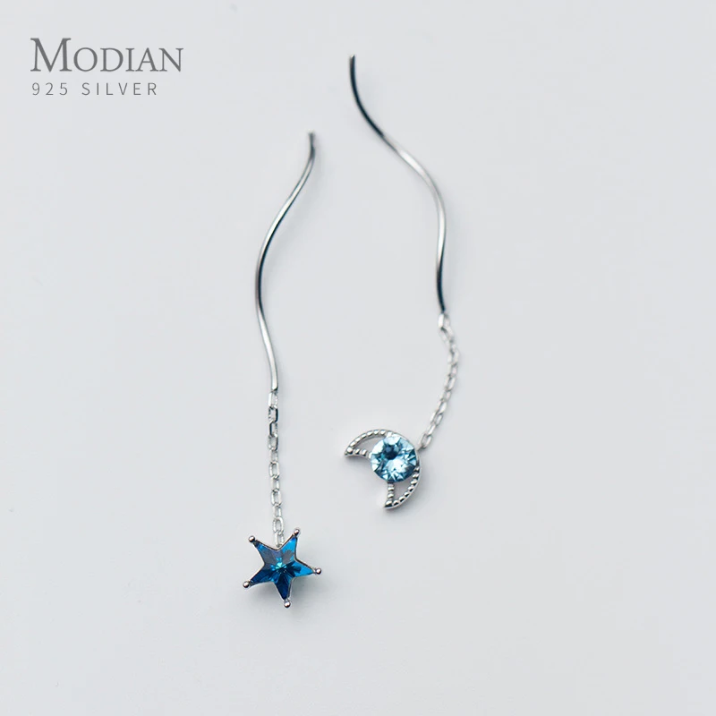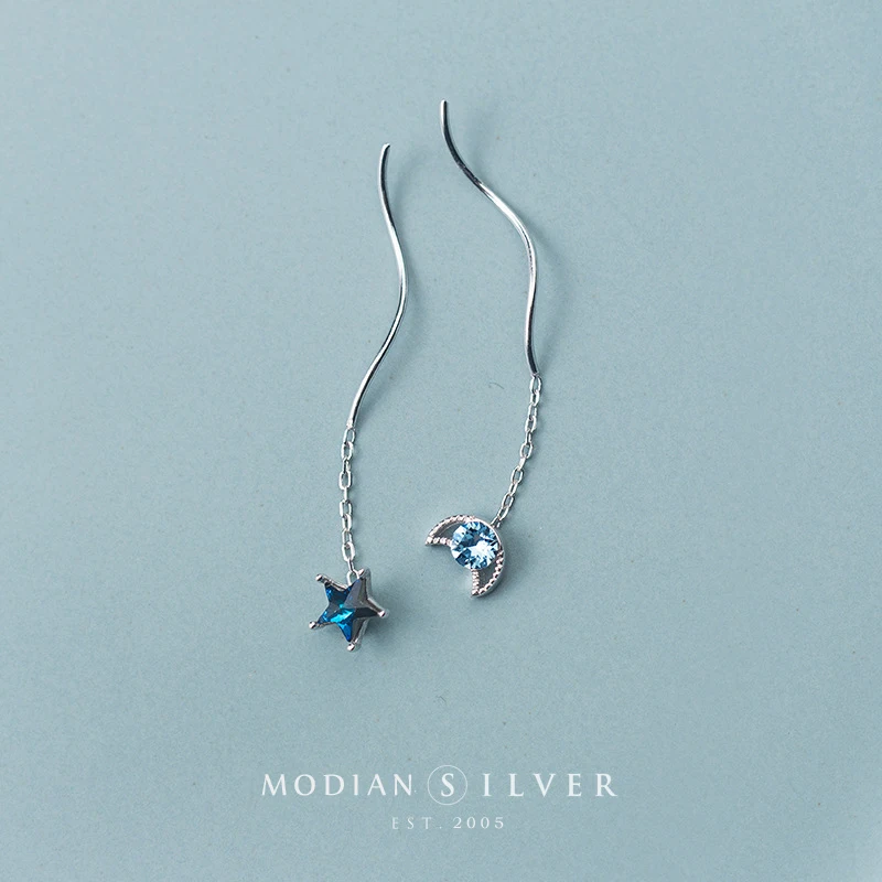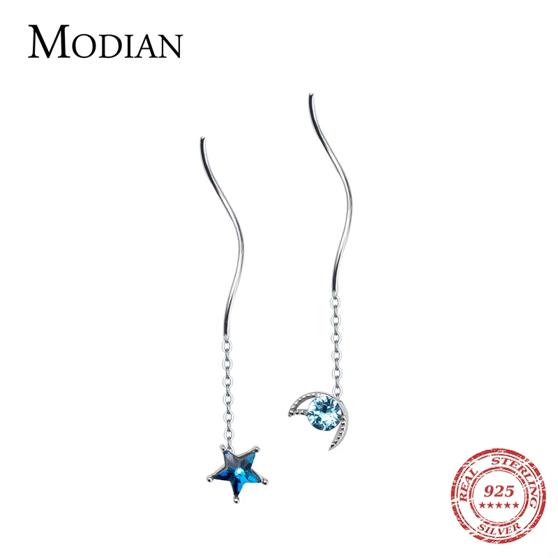 Modian Классическая кисточка на длинной цепочке Висячие серьги для женщин подлинное серебро 925 пробы прозрачное голубое Хрустальное звезды ювелирное изделие в форме Луны подарок