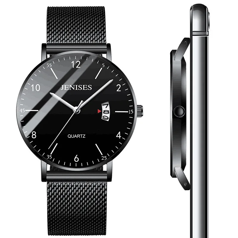 Часы наручные Jenises Мужские кварцевые, брендовые Роскошные Спортивные Повседневные водонепроницаемые с тонкой стальной сеткой, с датой