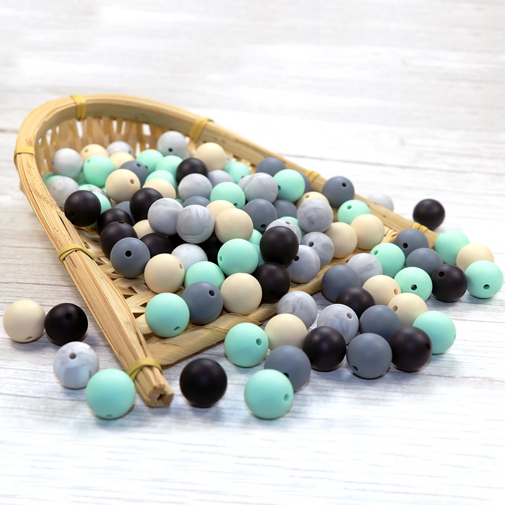 Joepada 100 шт./лот 9/12/15 мм Силиконовые Бусины Еда Класс делает ребенка режутся зубы Цепочки и ожерелья игрушка Silcone прорезывания зубов детские бусы Прорезыватель для зубов