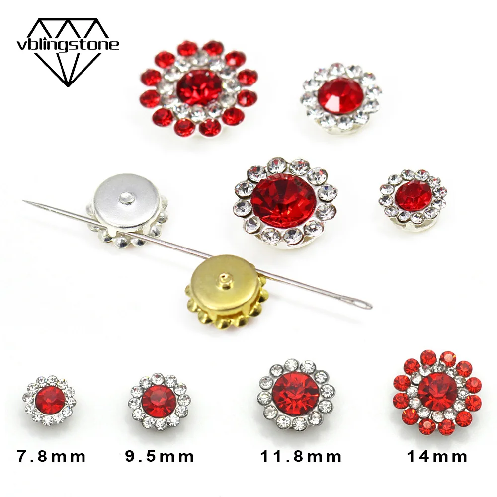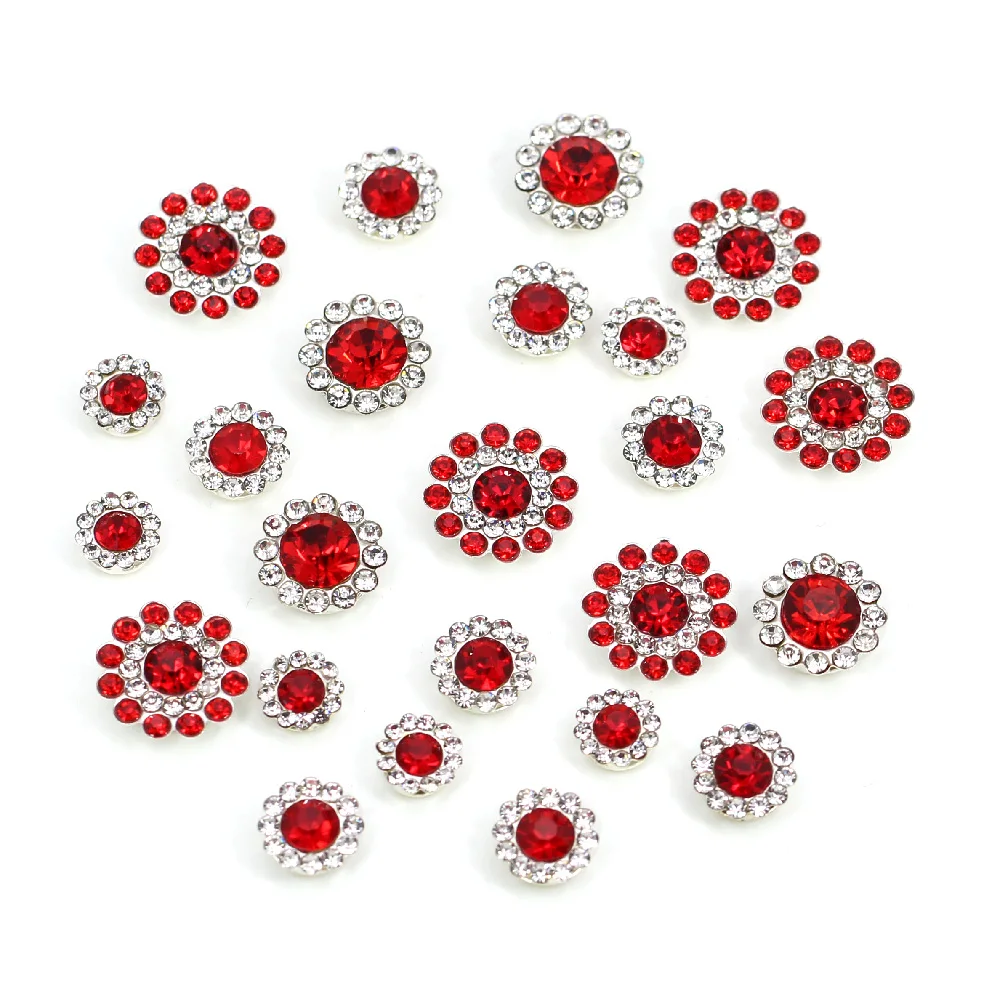 Круглые стразы в форме цветка с красными кристаллами, золотистое и серебристое дно для одежды, шитья, скрапбукинга, крафта, 7,8 мм, 9,5 мм, 11, 8 мм, 14 мм, 20 штук