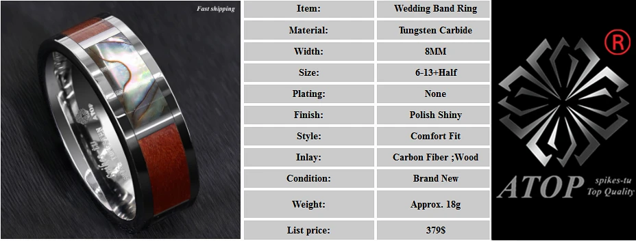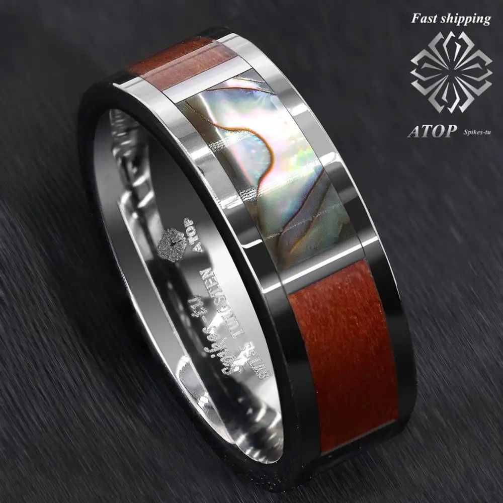 8 мм черный Вольфрам кольцо из карбида КоА деревянный ушка на обруч...