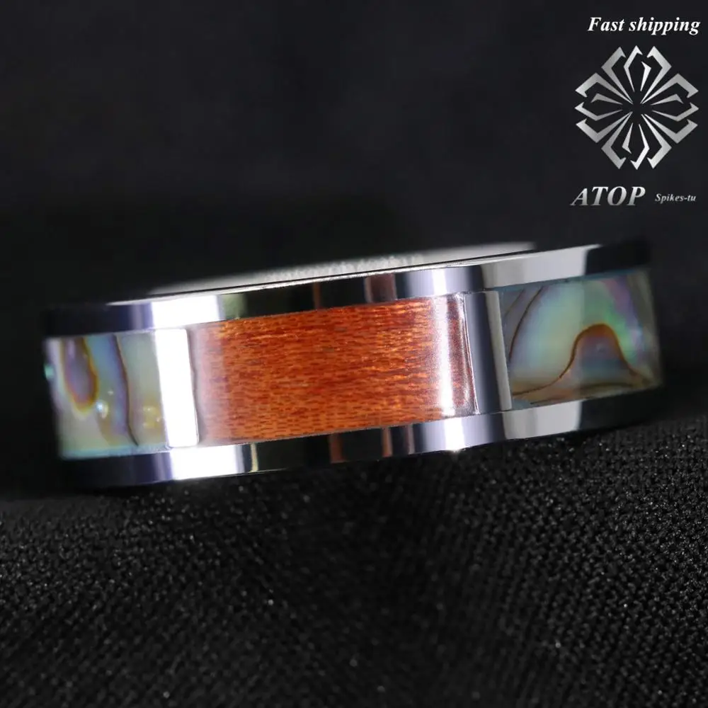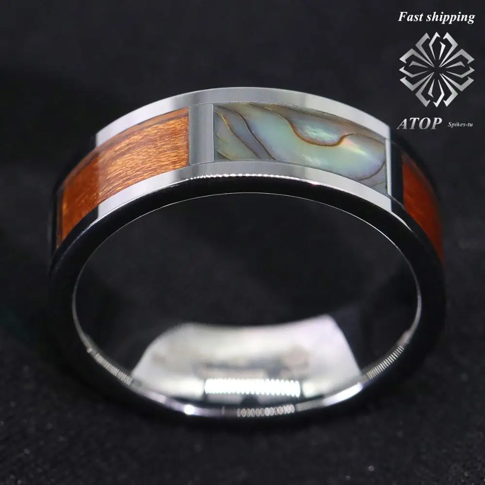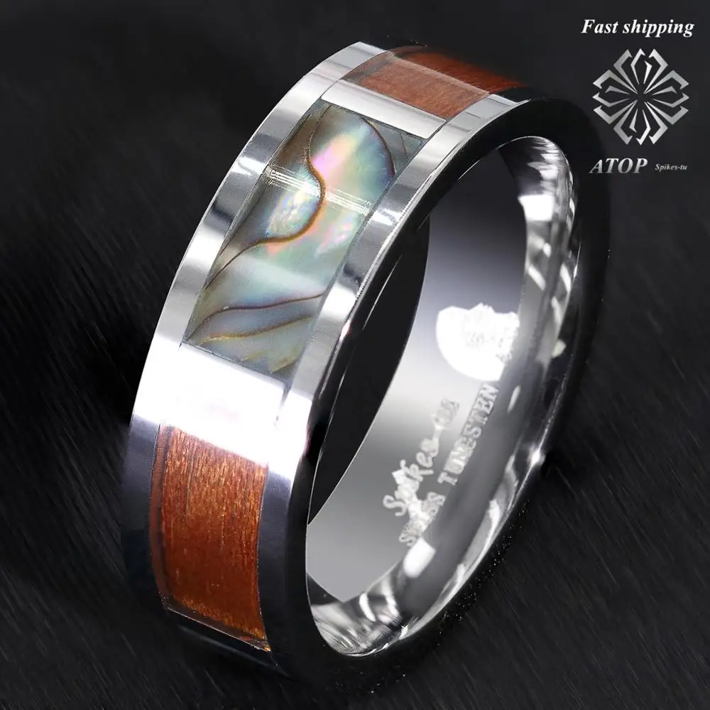 Серебряное вольфрамовое кольцо 8 мм, инкрустация ушка из дерева КоА, обручальное кольцо, мужские украшения
