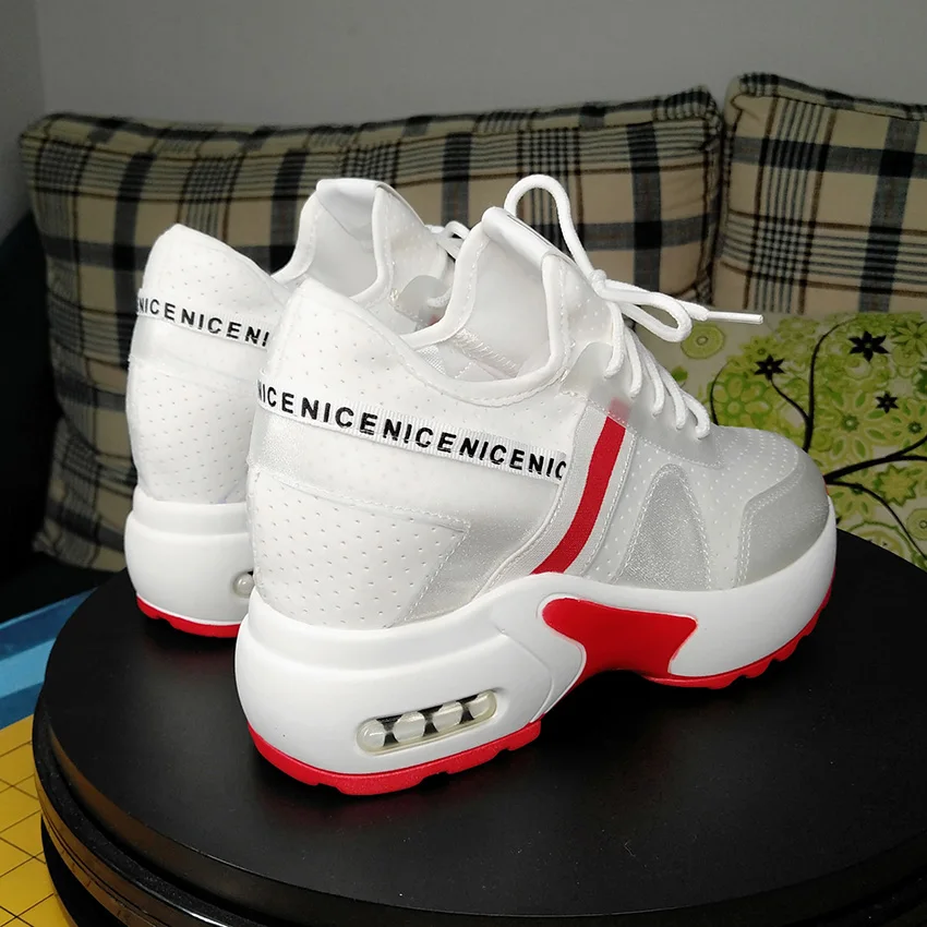 Сетчатые кроссовки на платформе, увеличивающие рост; Белые кроссовки; Женские туфли на высоких каблуках; Осенняя обувь для тенниса; Кроссовки на высоком каблуке