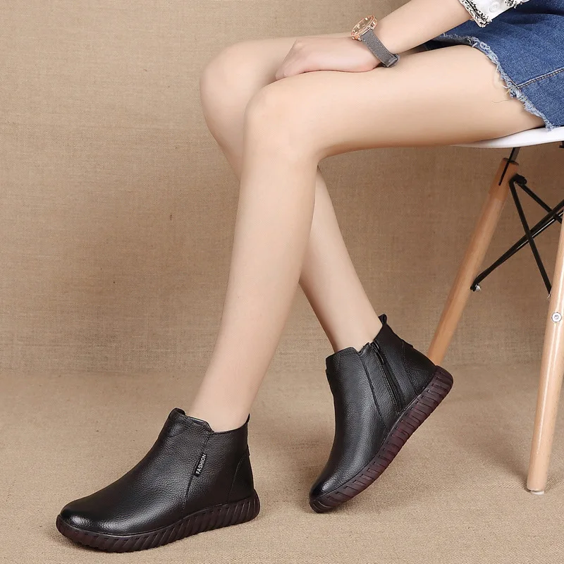 Ботинки женские из натуральной кожи, на плоской подошве, на молнии
